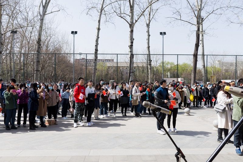 校园内其他师生也被热烈的氛围所深深吸引,纷纷驻足观看,大家举起手机拍下动人的一刻,并自发加入到快闪的队列当中,共同献礼建党百年。