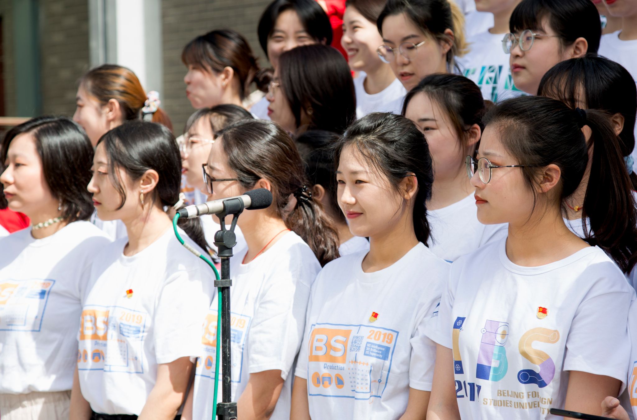 活动现场,伴随着悠扬的小提琴声和清亮的女声独唱,国际商学院师生党员陆续向广场走来,共同唱响《唱支山歌给党听》。熟悉的旋律在北外校园里响起,鲜艳的国旗、党旗、校旗随风飘扬,真诚的笑容热情绽放,一句句耳熟能详又感人至深的歌词唱出了每位国商师生党员对祖国、对党的崇敬与礼赞,唱出了他们传承红色基因、始终与党同行的坚定决心,唱出了新时代青年师生建设新北外、新国商的豪迈风采。