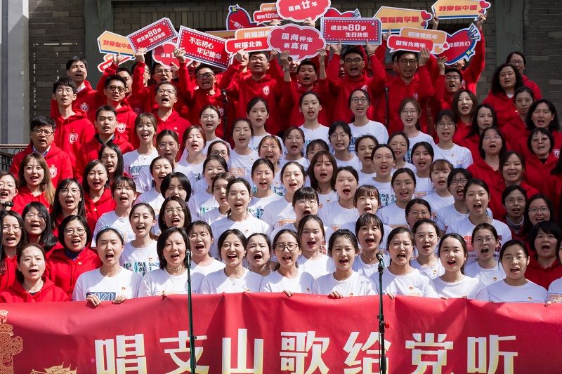 为迎接中国共产党成立100周年、北京外国语大学建校80周年以及国际商学院建院20周年,3月24日中午,国际商学院百名师生党员齐聚东院文化广场,举办《唱支山歌给党听》主题快闪活动。