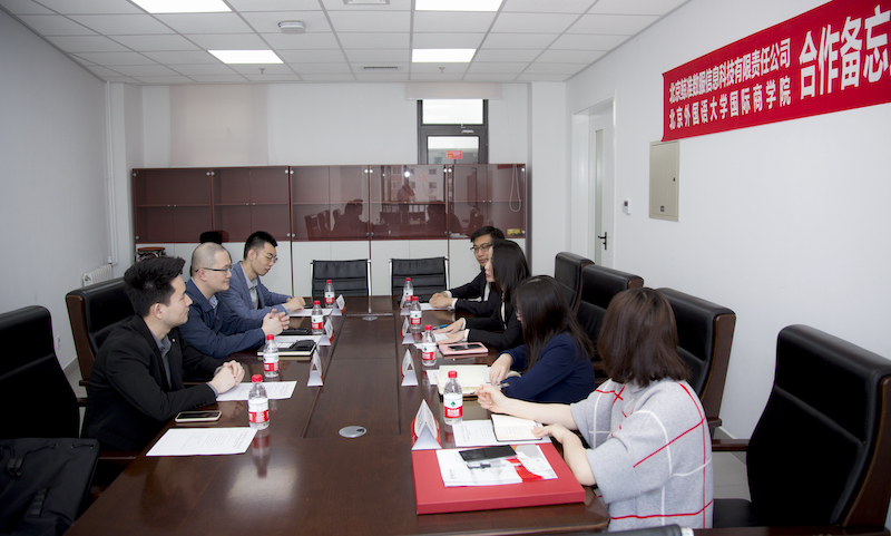 4月14日,北京外国语大学国际商学院与北京鲸准数服信息科技有限责任公司签署了战略合作备忘录,并向北京鲸准数服信息科技有限责任公司颁授“北京外国语大学国际商学院企业实践基地”牌匾。本次合作意味着双方即将在学生实践、人才培养、产学研融合等方面进行全方位的合作。北京鲸准数服信息科技有限责任公司战略副总裁林曦、北京外国语大学国际商学院副院长邵明星等出席签约仪式,仪式由国际商学院国内合作办公室副主任文雯主持。