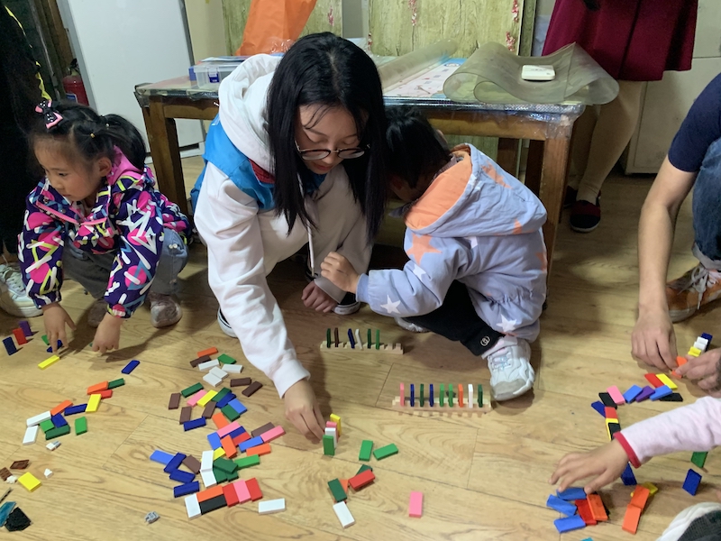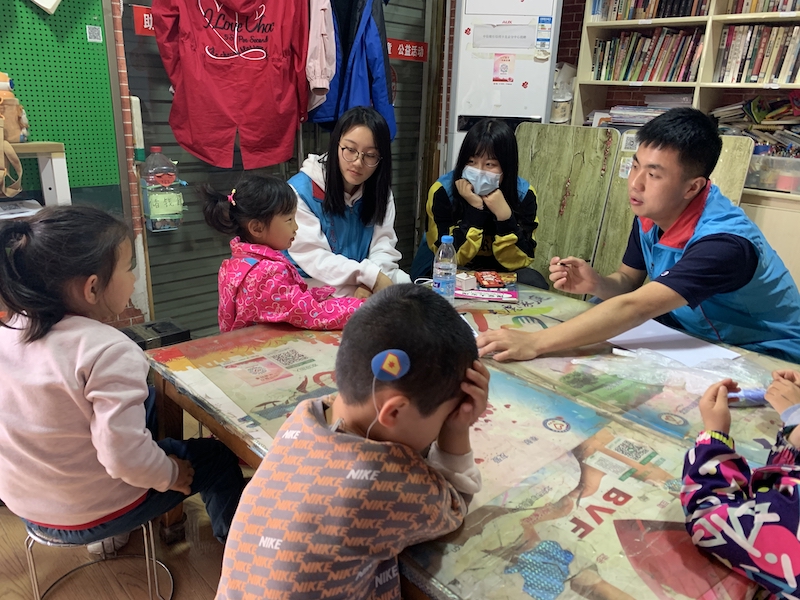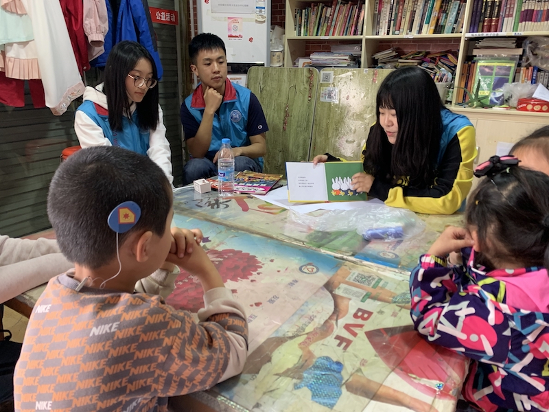 耳蜗宝宝是指存在听力障碍的幼儿群体,志愿者们充分考虑了耳蜗宝宝的听力状况与行为特征,提前做好志愿活动的准备工作,针对孩子特点精心设计了开火车、你画我猜、绘本阅读等活动。活动伊始,孩子们还有些拘谨,但是在志愿者的耐心引导与亲切沟通之下,孩子们开始逐渐主动回应问题,积极表达自我,并与志愿者们一起完成多米诺骨牌等锻炼协作能力与抗挫折能力的合作任务,在“暖暖儿童之家”负责老师的指导、志愿者们的相互配合,以及孩子们的积极参与之下,志愿活动最终圆满完成。