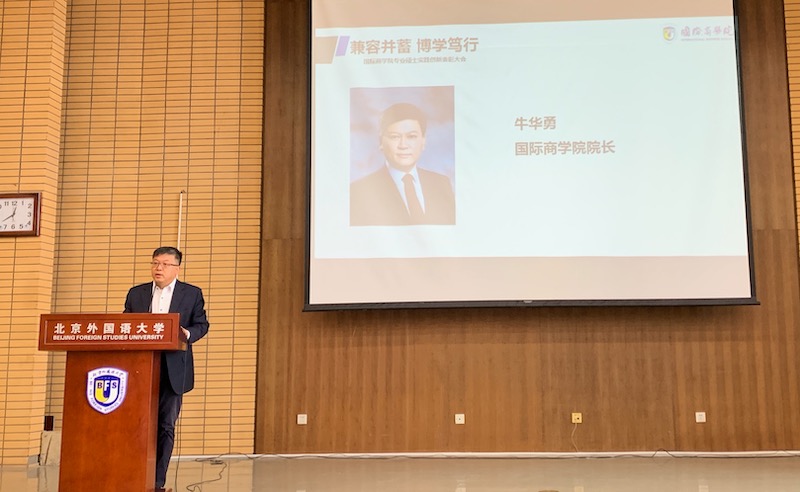 11月30日,国际商学院于逸夫楼第三阶梯教室召开创新实践表彰大会,隆重表彰学院在第四届全国国际商务专业学位研究生创新创业精英挑战赛中涌现出的优秀学生及指导老师,其中“乞力马扎罗山上的守望者”战队荣获大赛一等奖及最佳风采奖,连增老师荣获最佳指导教师奖。学院党总支书记李春丽、院长牛华勇、院务会成员、各系主任及2020级全体研究生、博士生参加了本次大会。