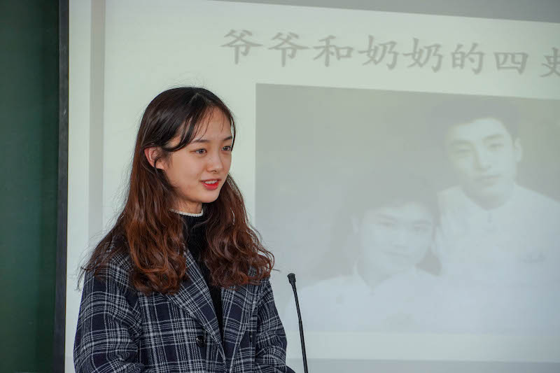 首先,叶纹笑宇同学通过对自己祖父祖母革命故事的讲述,把同学们带入了一幅幅生动的革命画面。