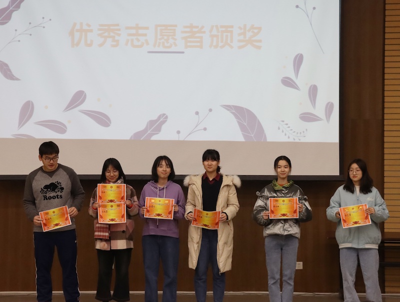 最后,学生会主席兼团总支常务副书记熊怡琳为全体优秀志愿者颁奖,会议在热烈的掌声中结束。