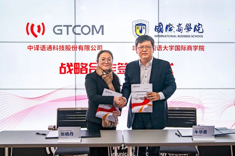2020年11月25日,国际商学院院长牛华勇到访中译语通科技股份有限公司,中译语通副总裁张晓丹出席会议。双方围绕金融指数、另类数据、国际研究等方向展开深入交流,并签署合作备忘录。北外国际商学院副院长宋泽宁,区域与全球治理研究院副院长李紫莹,中译语通美国公司总经理、国际部总监闫国卿一同出席。