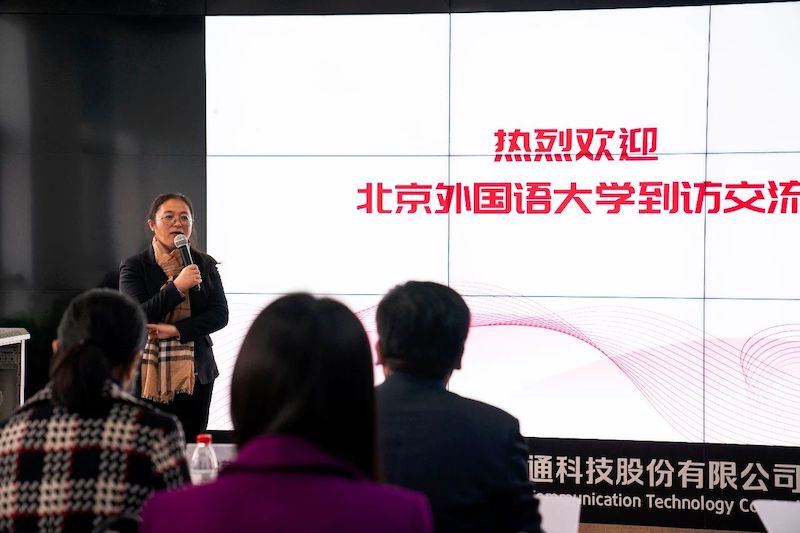 张晓丹介绍了中译语通在语言科技、金融科技等领域的业务布局以及大数据、人工智能领域的核心技术和行业应用。她表示,公司非常重视与高校和科研机构的合作,致力依托语言大数据联盟平台与全球200多所院校达成产学研合作,实现校企双方共建、共赢。北外国际商学院将金融研究和语言资源做了很好的融合,在国际金融研究领域具有独特优势;中译语通近年来将跨语言大数据与金融领域行业应用结合,形成了另类数据分析服务、金融量化和监管解决方案。双方建立合作关系,将有利于发挥产学研优势,推动金融科技人才培养、金融科技前沿技术研究和成果转化。
