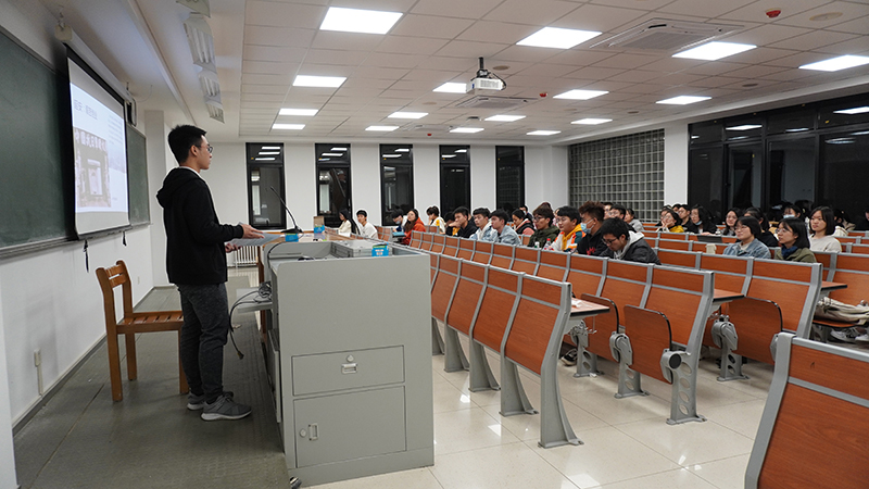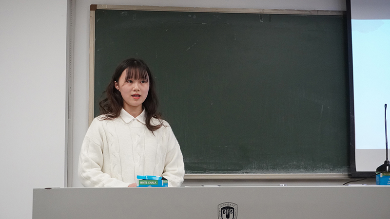 王梦瑶以周恩来总理对我校的寄语“不仅要培养军事翻译,而且要培养新中国的外交人才”为引语,以我校建校以来的历史变迁为线索,为同学们介绍了北京外国语大学的建校历程。