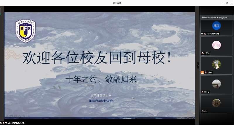 晚上7点半,校友们陆续签到并进入直播间,主持人王珏飞和阿克达的引言将阔别十年的校友们拉回共同的北外记忆。