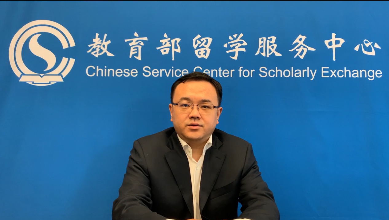 牛院长讲话后,现场播放了教育部留学服务中心国际处副处长韩三军的视频。韩处长代表教育部留学服务中心欢迎了北外国商国际项目的新同学,介绍了出国留学培训项目的发展历程,并肯定了出国留学培训项目在疫情背景下的特殊意义。