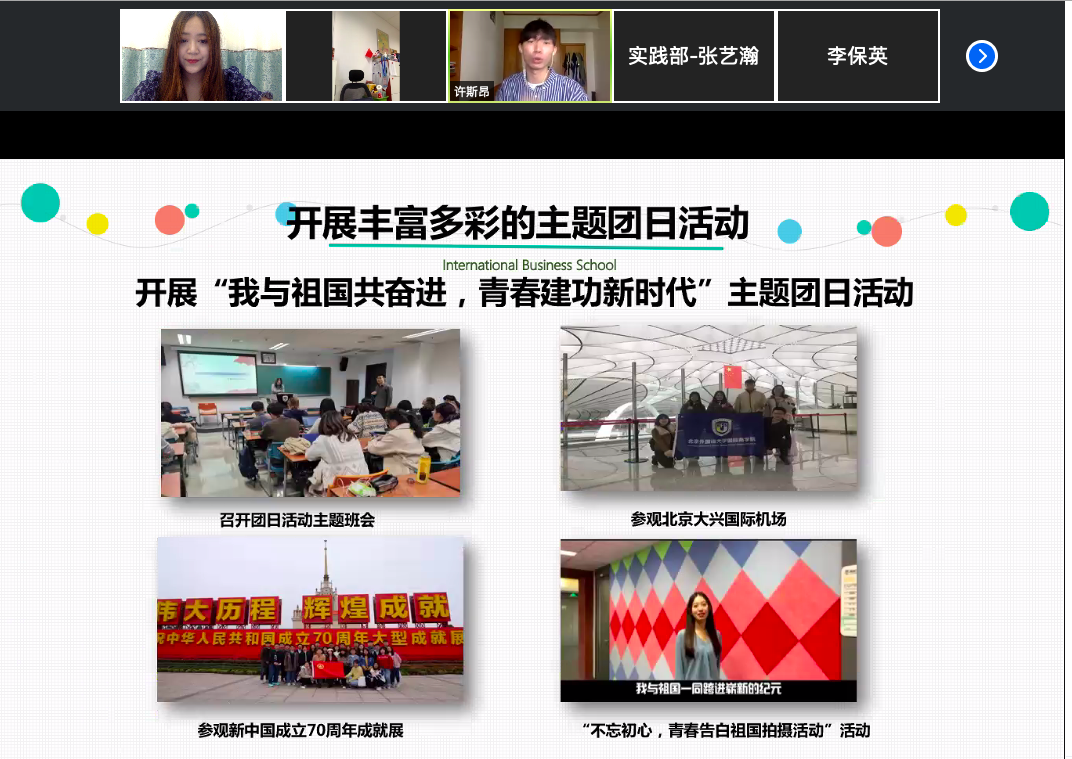 6月19日,北京外国语大学国际商学院研究生团学联换届大会于腾讯会议平台成功举办。国际商学院学生事务办公室全体教师、本科生团学联主席、研究生班级代表和研究生团学联全体成员出席了本次会议,会议由研究生团学联副主席许霞主持。