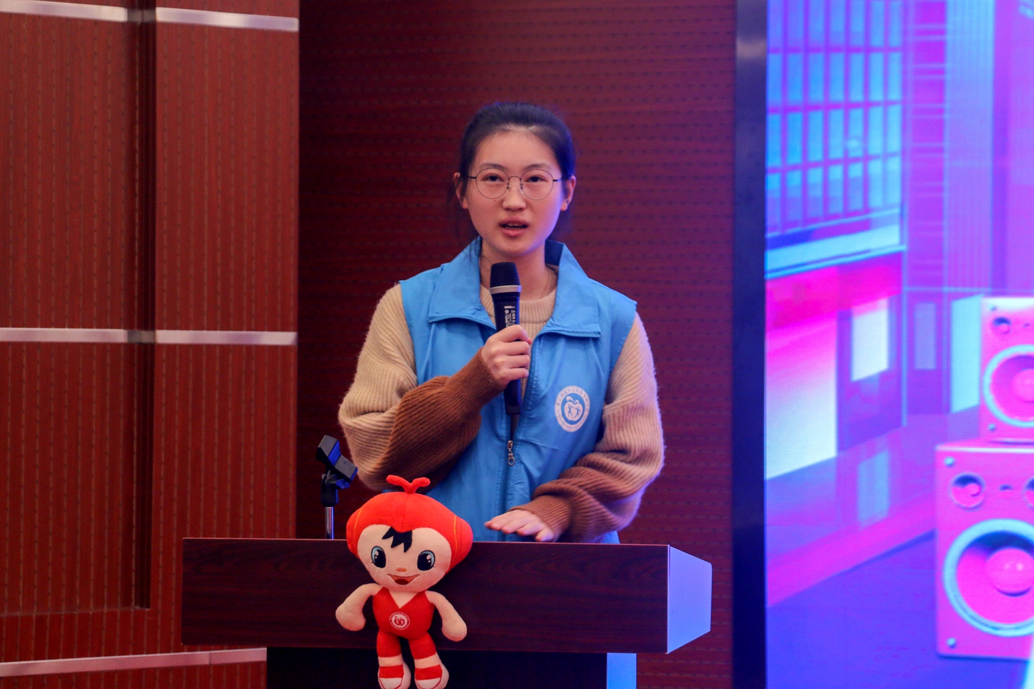 活动开始,文思君书记上台致辞,对大赛进行简单介绍,鼓励到场志愿者们赛出风采,并对未来两年的志愿服务情况表示关切与期待。主持人依次介绍各位来宾后,所有嘉宾及参赛志愿者首先进行合影留念。随后比赛正式开始,各位参赛志愿者依照抽签顺序轮流进行项目汇报和答辩环节。国商志愿服务队同学从“项目介绍,项目回顾,项目预期发展”三个部分,对此次参赛项目“曲艺之旅-北京戏曲博物馆义务讲解员活动”进行了详细的汇报,并在答辩环节认真回答了评委老师提出的两个相关问题。