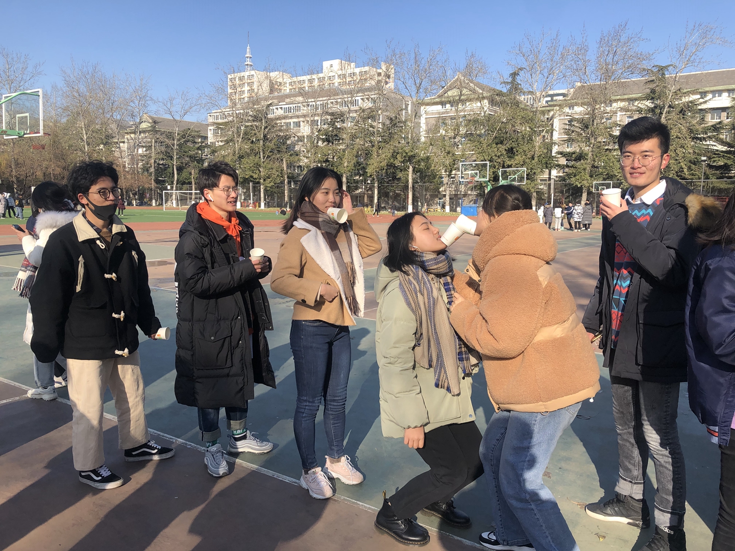 团学联各部门陆续到达操场后,活动正式开始。各部门积极参与“你画我猜”、“ 吸管运输”、“篮球赛”等多种趣味纷呈的小游戏,现场笑声不断。经过激烈角逐,团学联外联部、文艺部和编辑部分别夺得前三甲的席位。最后本届冬季长跑活动在全体成员合影留念后落下帷幕。