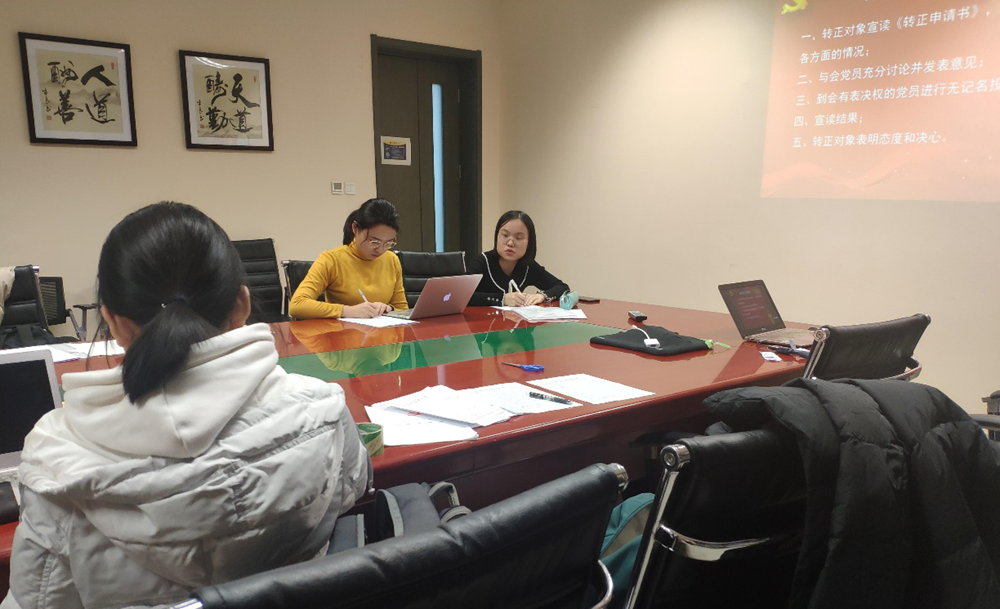 12月01日晚,国际商学院学生管理支部召开全体党员会议,组织开展了2019年度组织生活会暨党员民主评议活动,会议由党支部书记赵晨主持。