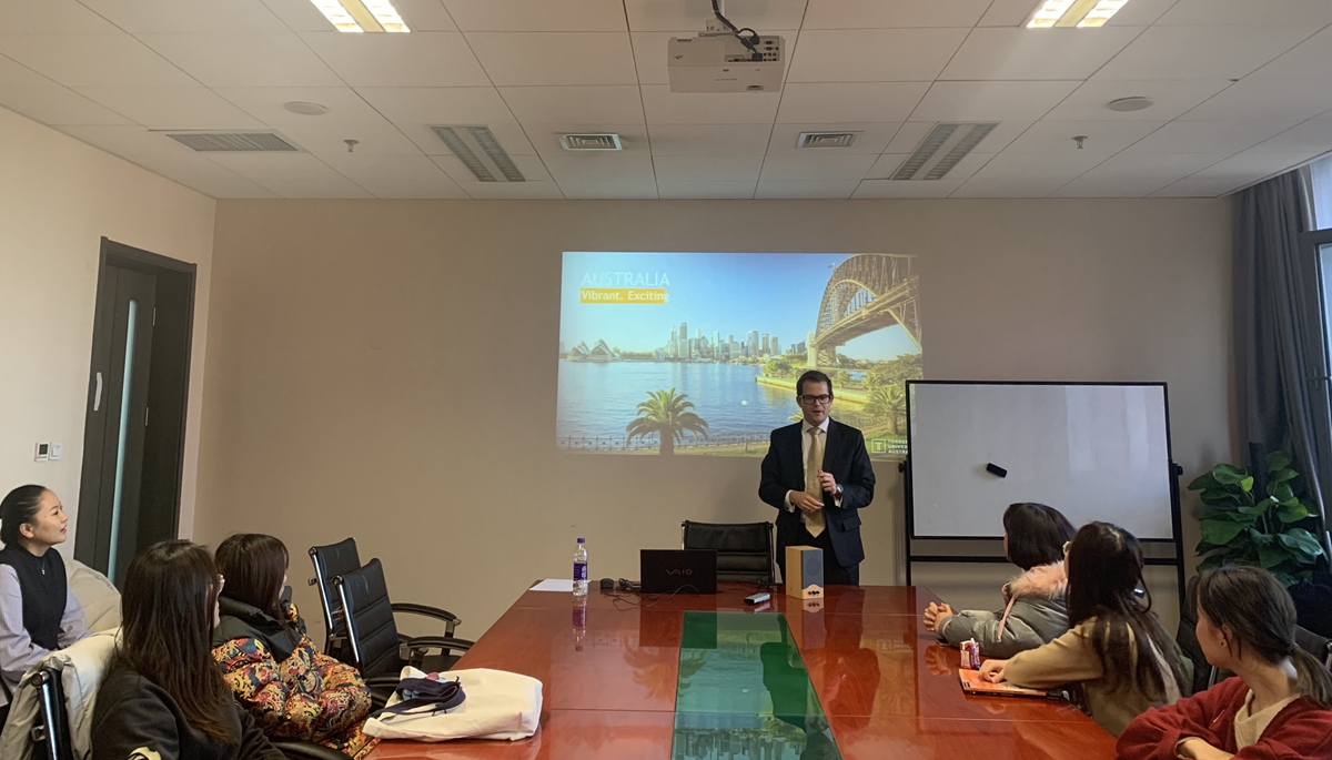 Mr Raffael Stangl为国际项目的学生们进行了宣讲会,针对蓝山国际酒店管理学院的排名和校园进行了介绍,对学生们比较感兴趣的入学要求、学生服务、专业简介、奖学金、实习就业、合作伙伴等进行介绍,最后是问答环节。学生们对蓝山和澳洲留学生活充满了好奇和兴趣,本次宣讲为他们以后的留学申请和留学生活提供了更深的指导意义。