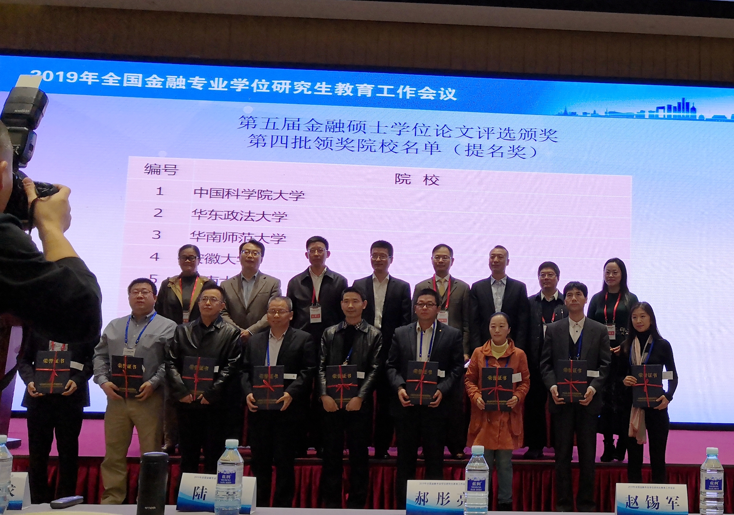 会议首先进行了颁奖仪式,在第五届金融硕士教学案例大赛中,共评出优秀教学案例66篇,在第五届金融硕士优秀学位论文大赛中,共评出优秀论文24篇,优秀论文提名奖10篇。其中,由我院2016级金融硕士岳敏撰写,金融系教师余靖雯指导的 《来华留学与中国对“一带一路”沿线国家直接投资的实证研究》荣获提名奖。