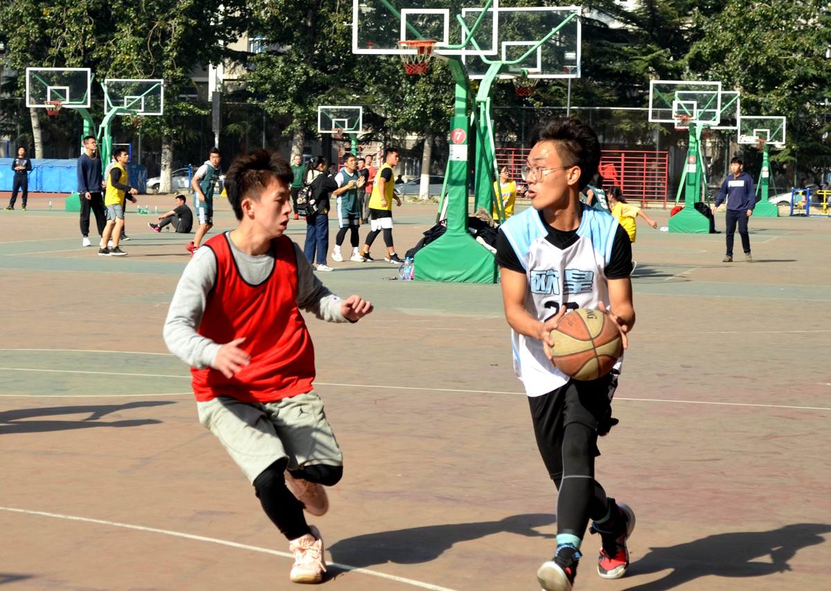 10月30日12:30,国际商学院新生篮球队和欧洲语言文化学院新生篮球队于篮球场七号场进行“五四杯”新生混篮赛半决赛的比拼。