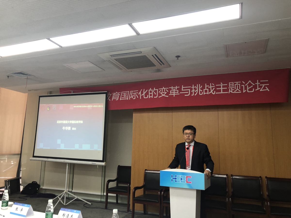牛华勇院长出席本次论坛,并进行了“商科来华留学教育的机遇与挑战”的主题发言。