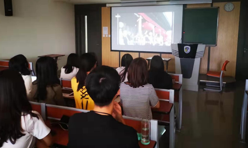 接着,陈昭希介绍了主题教育影片,支部全体成员观看了开国大典解说和开国大典彩色版。