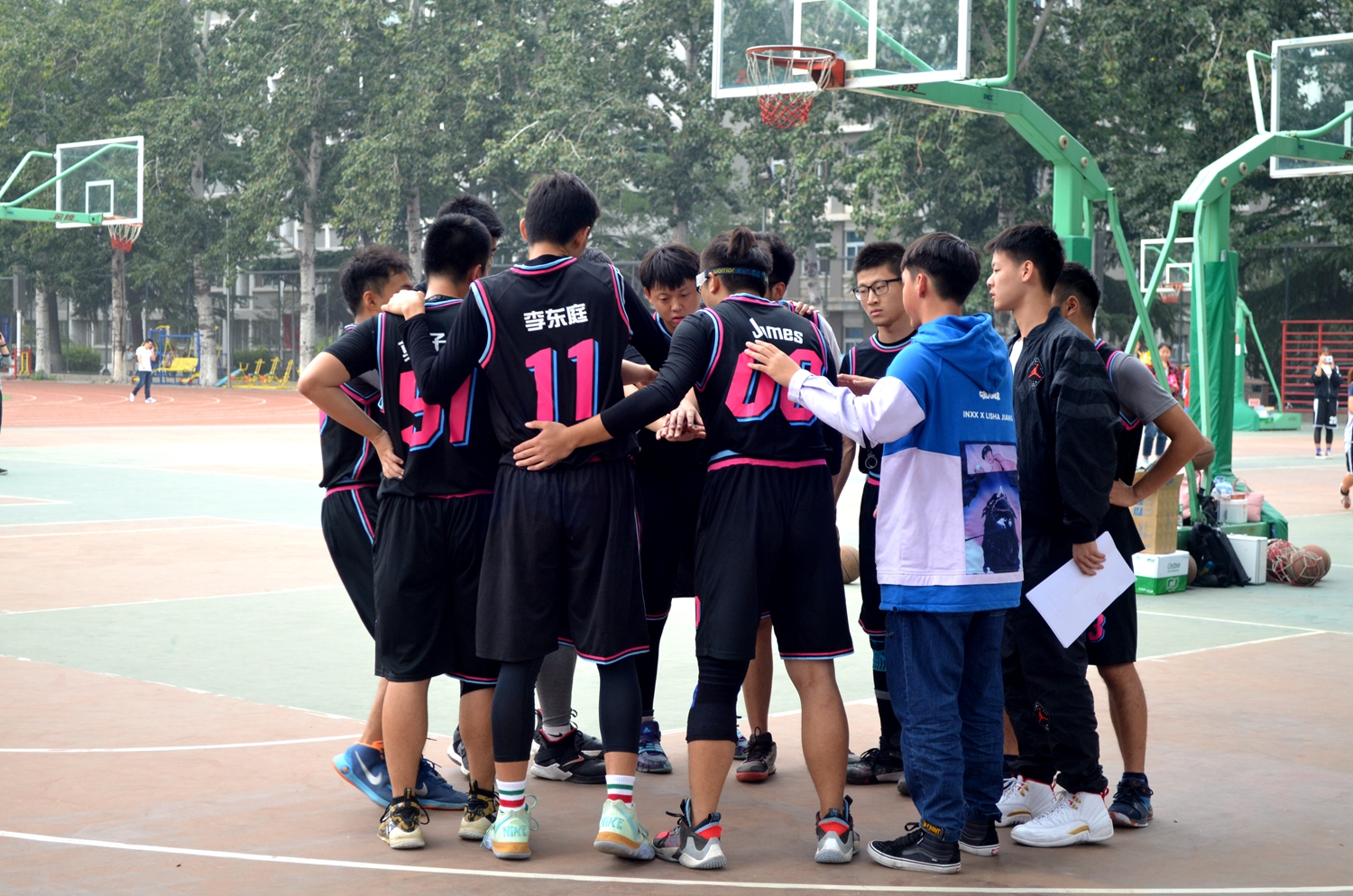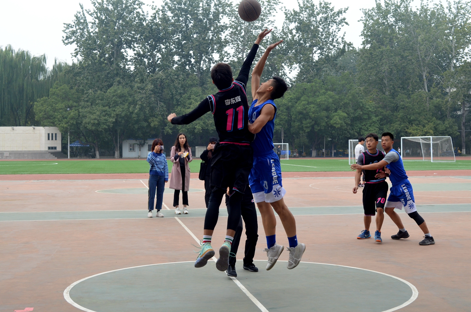10月10日12:30,北京外国语大学国际商学院男子篮球队与中国语言文学学院男子篮球队于篮球场6号场进行“北外杯”篮球赛淘汰赛比拼。