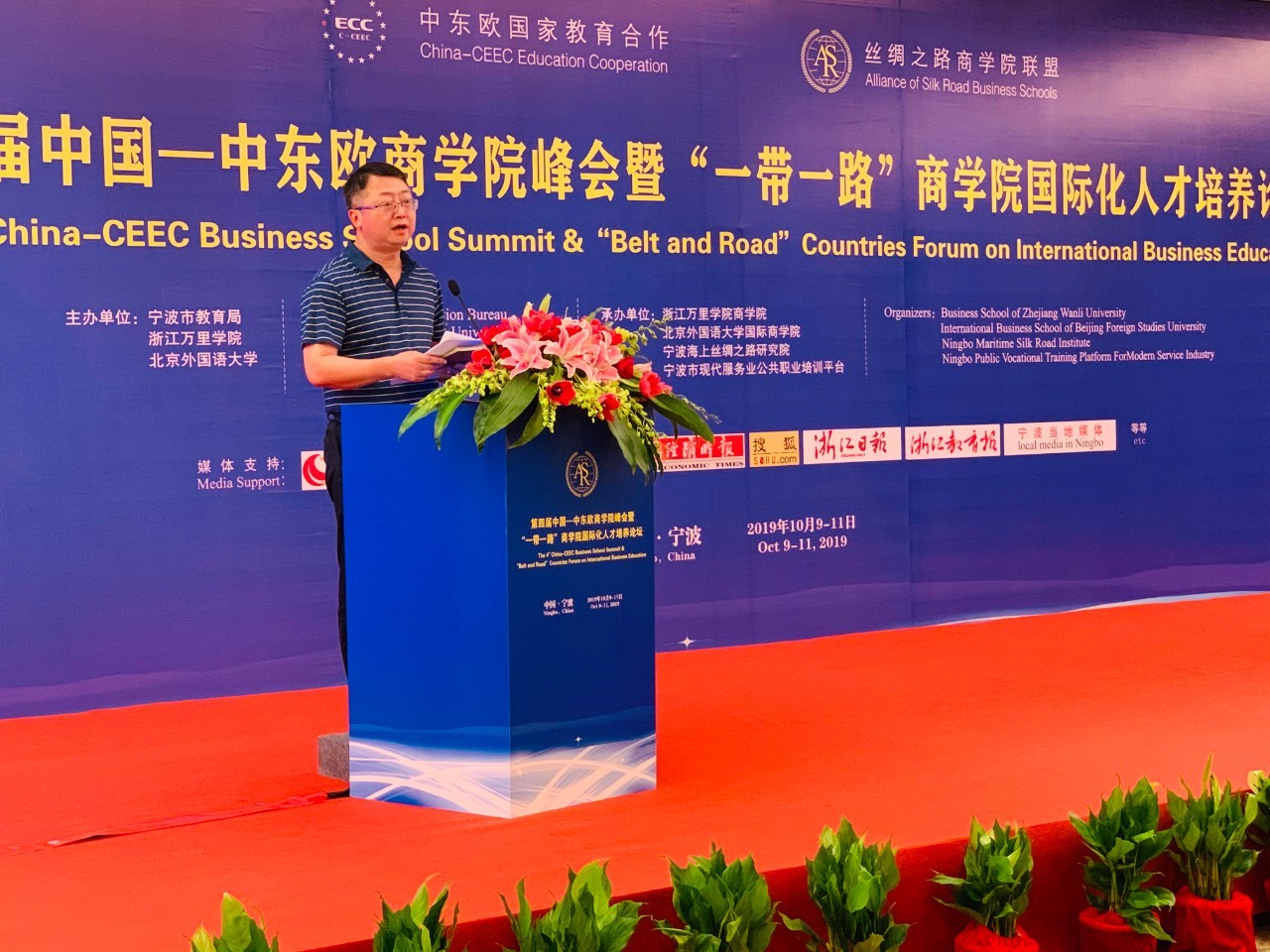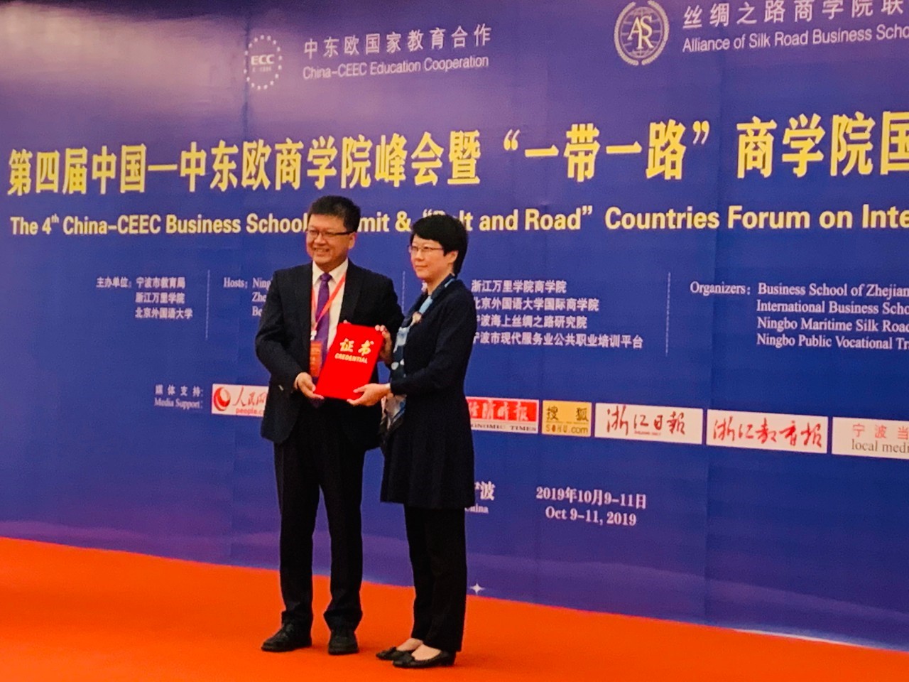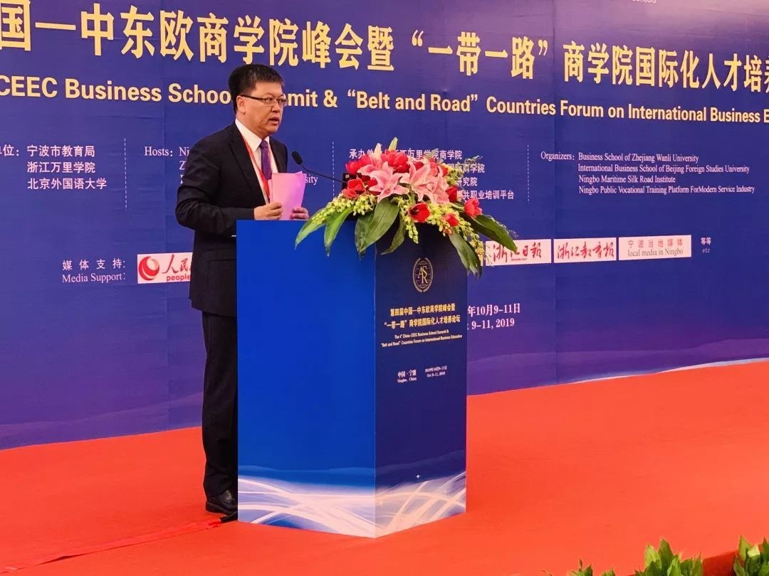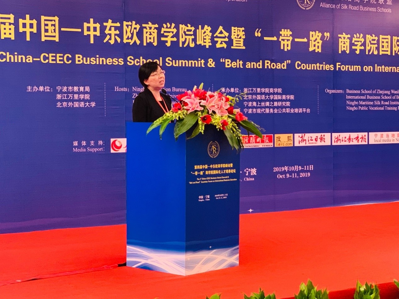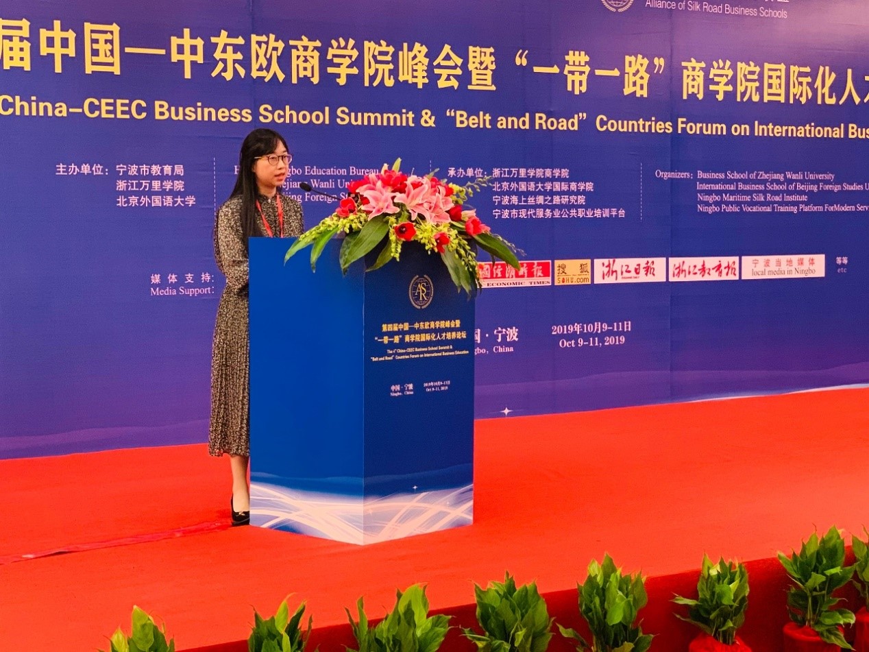 10月10-11日,由宁波市教育局、北京外国语大学、浙江万里学院主办,北京外国语大学国际商学院、浙江万里学院商学院、宁波海上丝绸之路研究院、宁波市现代服务业公共职业培训平台承办的“第四届中国—中东欧商学院峰会暨‘一带一路’商学院国际化人才培养论坛”在宁波隆重举行。国际商学院院长牛华勇,院长助理、来华留学市场部主任董丽丽,国际商学院教师陈若鸿、余靖雯、康斯坦丁,学生事务办公室副主任李一可,来华留学市场部席倩倩、刘晓、康妮,南方研究院市场部主任陈洋洋,副主任胡可为,国际商学院部分学生等参加了本次论坛。