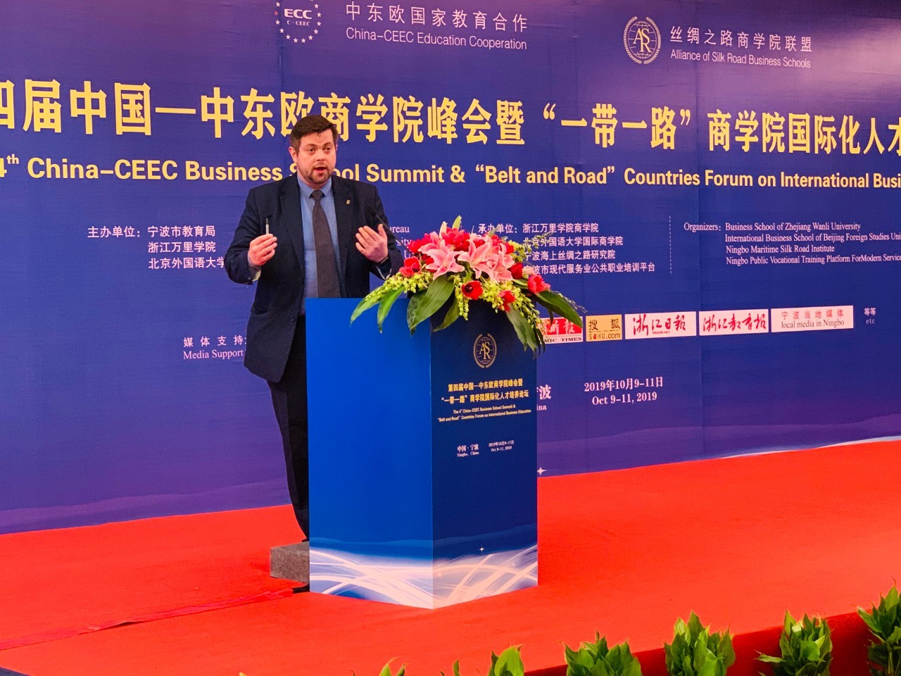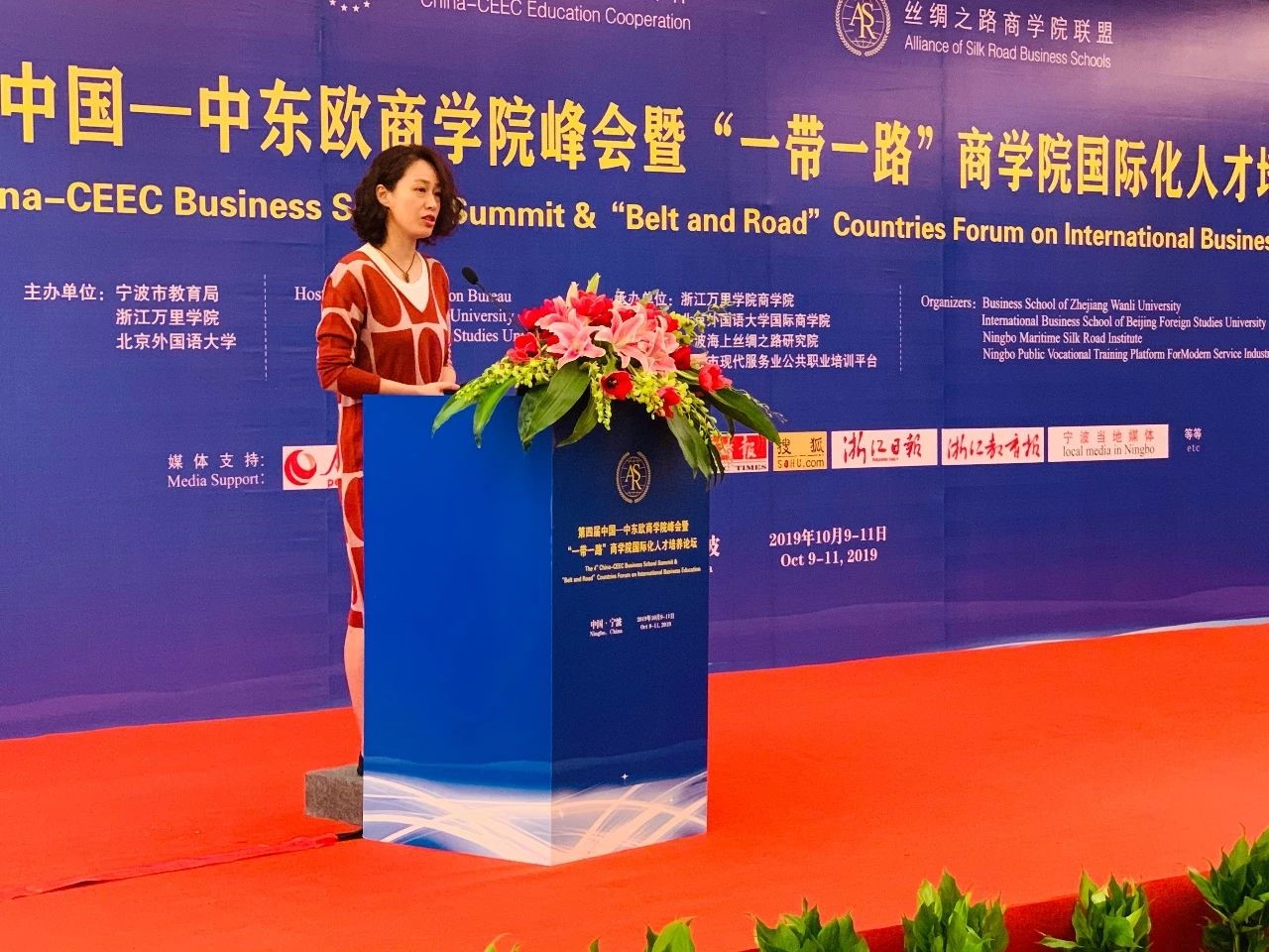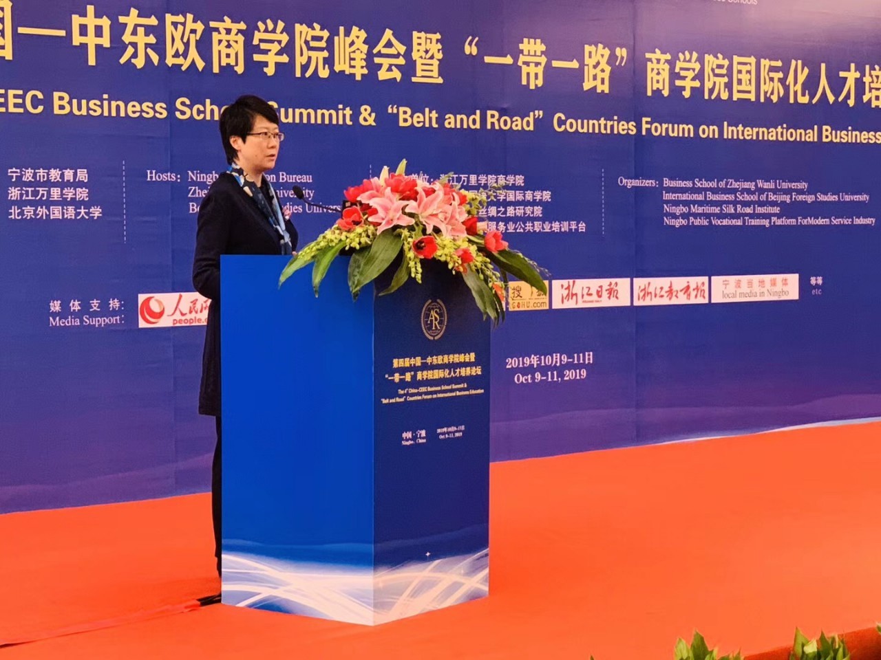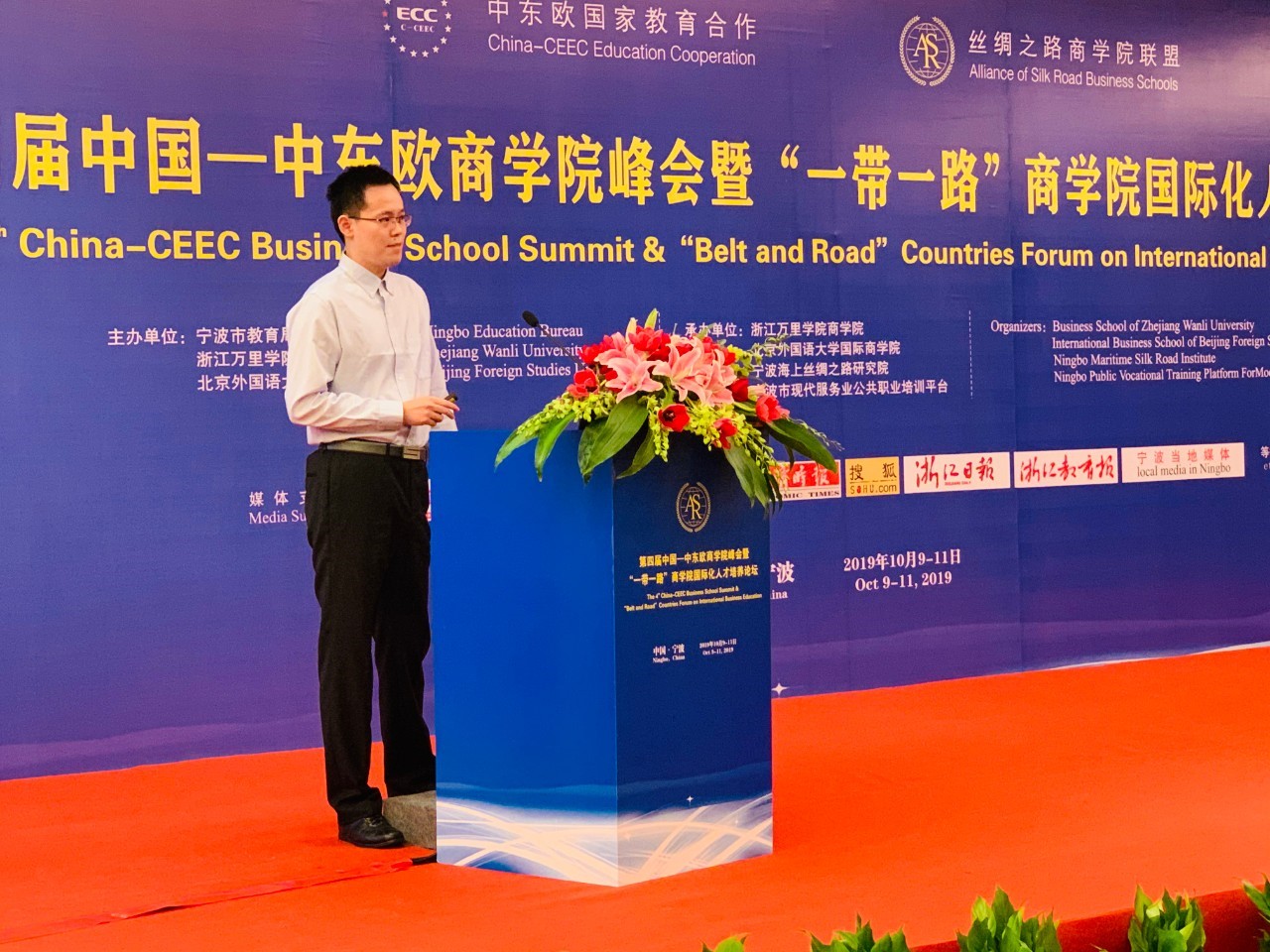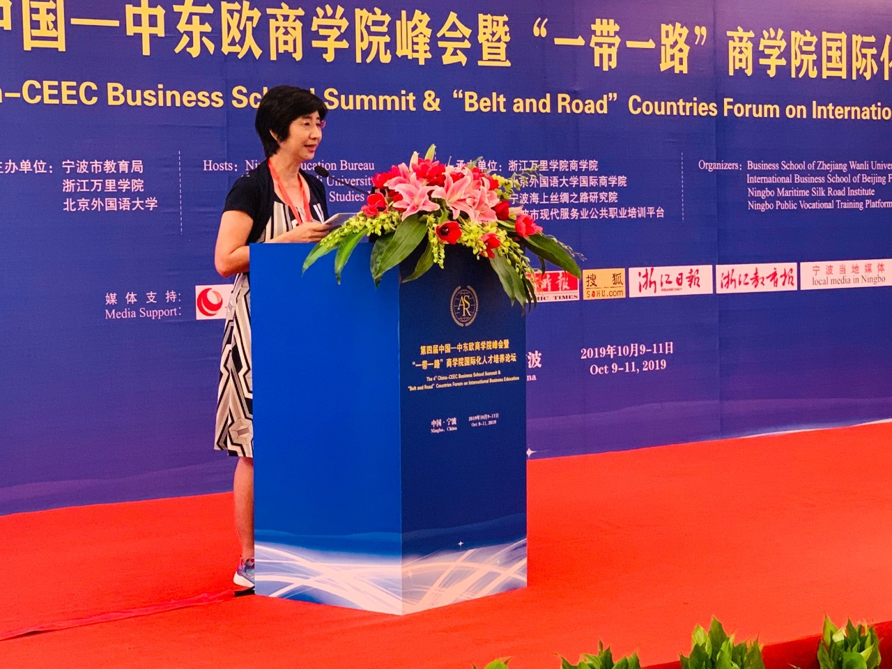 10月10-11日,由宁波市教育局、北京外国语大学、浙江万里学院主办,北京外国语大学国际商学院、浙江万里学院商学院、宁波海上丝绸之路研究院、宁波市现代服务业公共职业培训平台承办的“第四届中国—中东欧商学院峰会暨‘一带一路’商学院国际化人才培养论坛”在宁波隆重举行。国际商学院院长牛华勇,院长助理、来华留学市场部主任董丽丽,国际商学院教师陈若鸿、余靖雯、康斯坦丁,学生事务办公室副主任李一可,来华留学市场部席倩倩、刘晓、康妮,南方研究院市场部主任陈洋洋,副主任胡可为,国际商学院部分学生等参加了本次论坛。