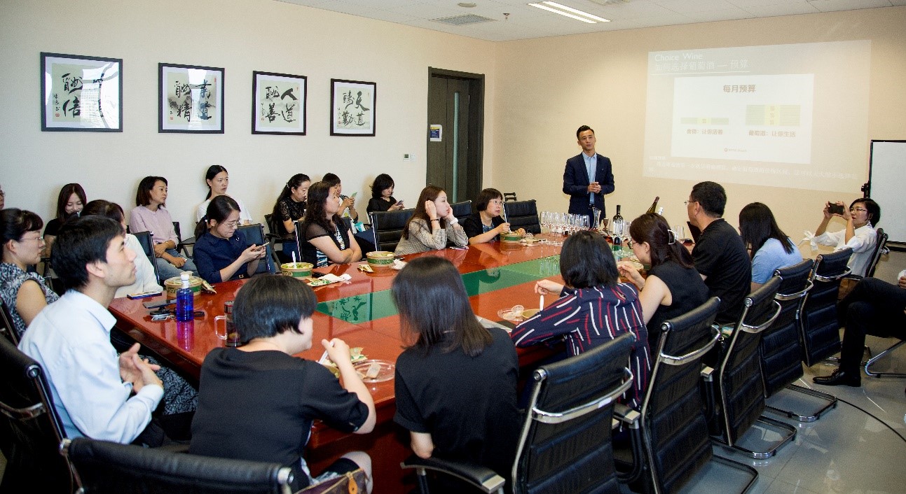 9月18日,国际商学院教师发展中心举办“葡萄酒礼仪与文化”活动,WSET专业品酒师曹睦林等带来关于葡萄酒品鉴与文化礼仪的讲座,国际商学院近四十人参加活动。