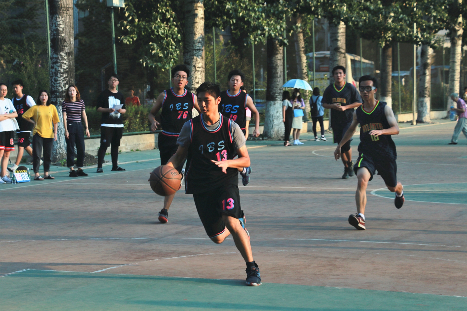 9月26日16:40,北京外国语大学国际商学院男子篮球队与德语学院男子篮球队在篮球场5号场展开小组赛对决。