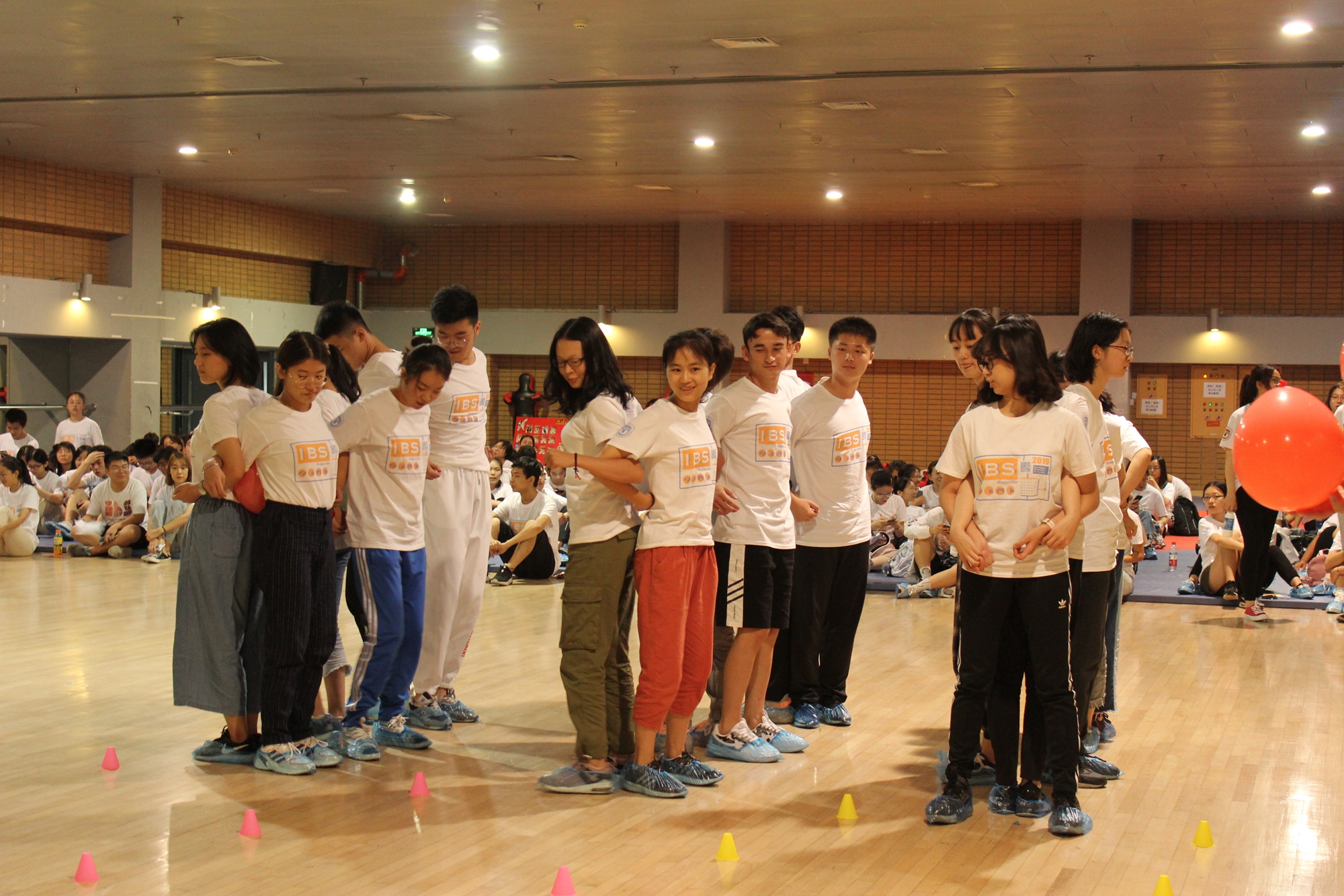 随后,同学们进入体育馆四层进行趣味问答、传呼啦圈、七手八脚等破冰游戏。同学们积极参与,热情高涨,嘉宾们的歌舞表演也引起阵阵喝彩。