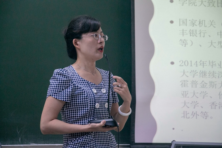 入学指南会结束后,在逸夫楼各教室,各专业老师详细地介绍各专业课程的专业培养目标、课程设置与就业方向并与同学们进行更多的交流。