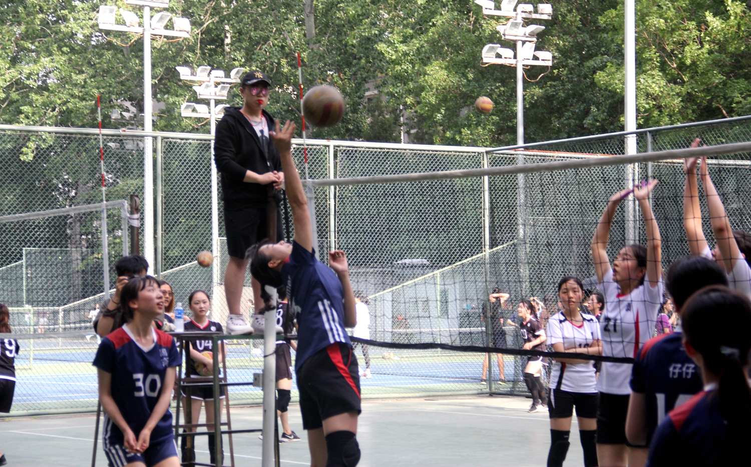 5月24日16:20,北京外国语大学国际商学院女子排球队与法学院女子排球队于1号排球场展开了“北外杯”排球赛淘汰赛的比拼。