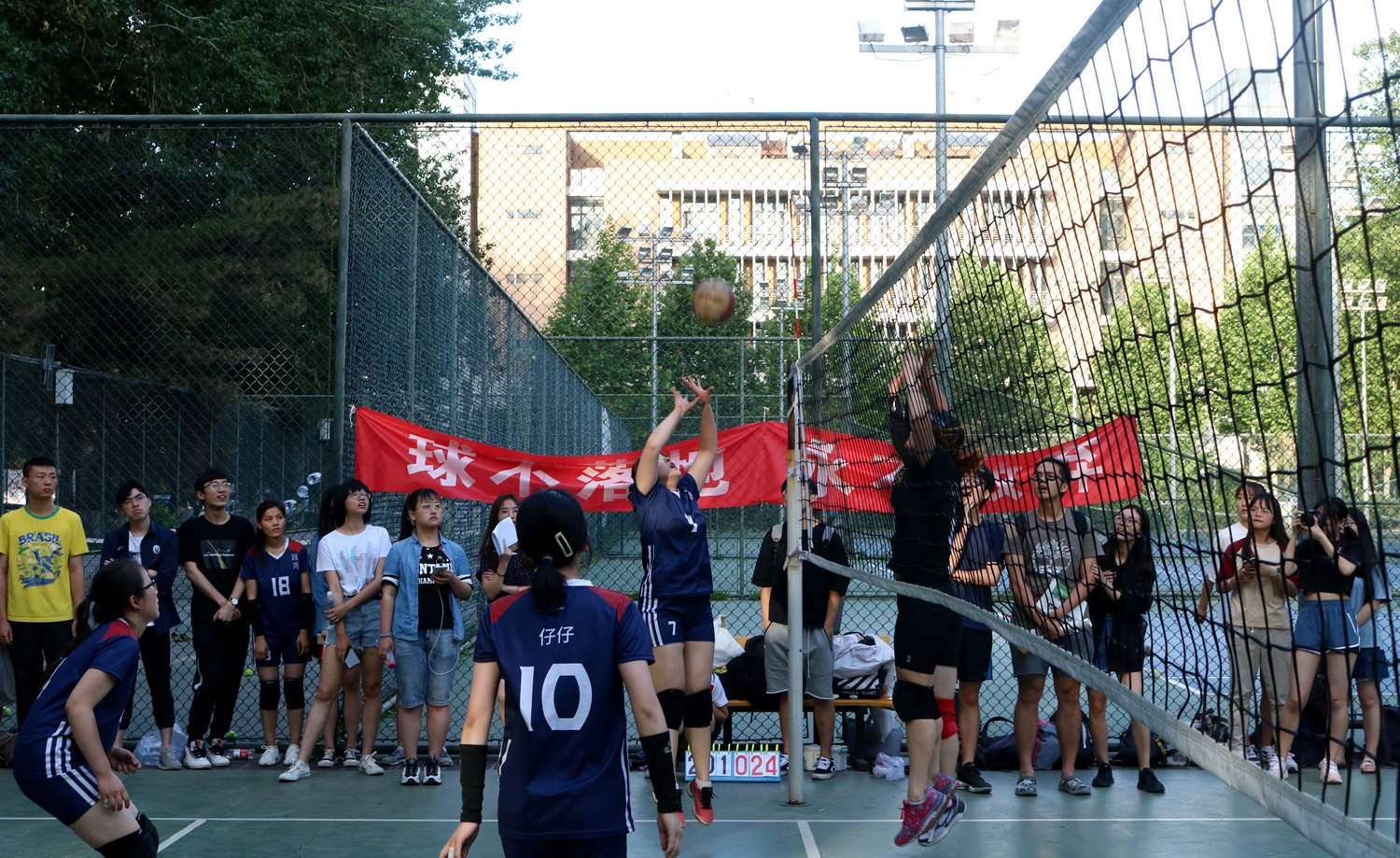 5月27日17:15,北京外国语大学国际商学院女子排球队与法语语言文化学院女子排球队于排球场进行了“北外杯”排球赛女子半决赛的对决。国商女排不畏强敌,热情高涨,最终以3:2的比分战胜法语女排,进军决赛。