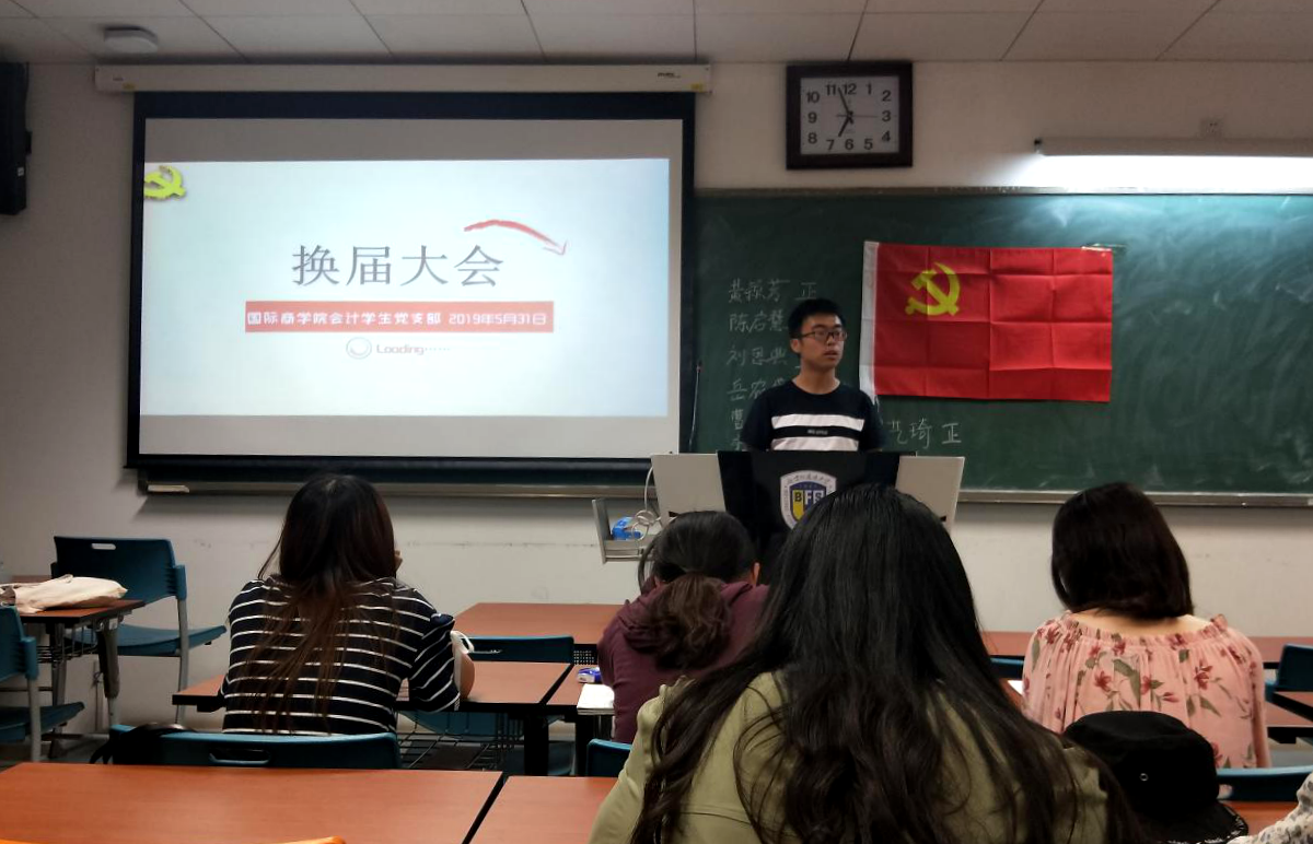 5月31日下午5:30,国际商学院会计学生党支部于综合楼314召开支部发展、转正及换届大会,讨论关于杨璐洁、李静澜、叶子萌、黄菲莎、华晓涵和周璐等6位发展对象转为预备党员,黄颖芳、陈启慧、刘思典、岳农盛、曹青怡、李榴心、万金芊、刘艺琦申请转为正式党员以及支部换届的问题。经过党支部支部大会讨论、票决后,6位发展对象最终都被接受为预备党员,8位预备党员全部转为正式党员。