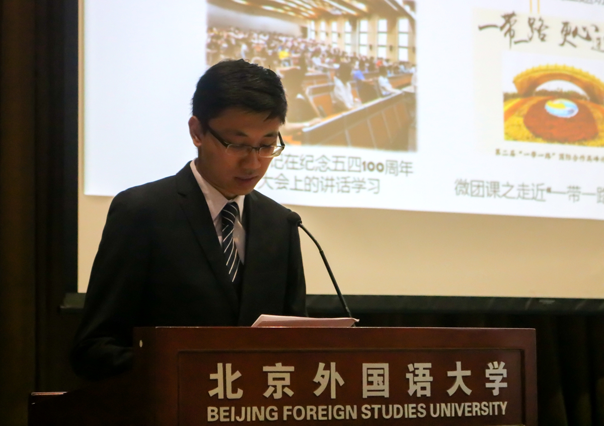 6月16日18:00,北京外国语大学国际商学院团学联换届选举大会于逸夫楼第三阶梯教室召开。国际商学院党总支书记刘鹏,企业管理系系主任王敏,国际商学院院长助理、校团委副书记李文斌,学生事务办公室副主任李一可,本科生团总支书记邓会荟,本科生辅导员王米川,北京外国语大学学生工作部、团委及各院系教师代表担任教师评委。校学生会、国商研究生会代表,国商团学联全体成员,国商各班级代表参与本次大会担任学生评委。