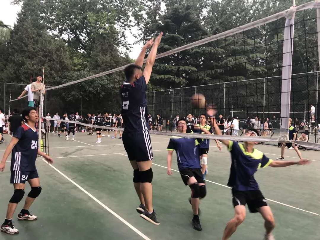 5月17日17:50,北京外国语大学国际商学院男子排球队与北外学院及国际新闻学院男子排球队于4号排球场展开小组赛第二场的比拼。国商男排力压对手,连胜两局,赢得比赛胜利。