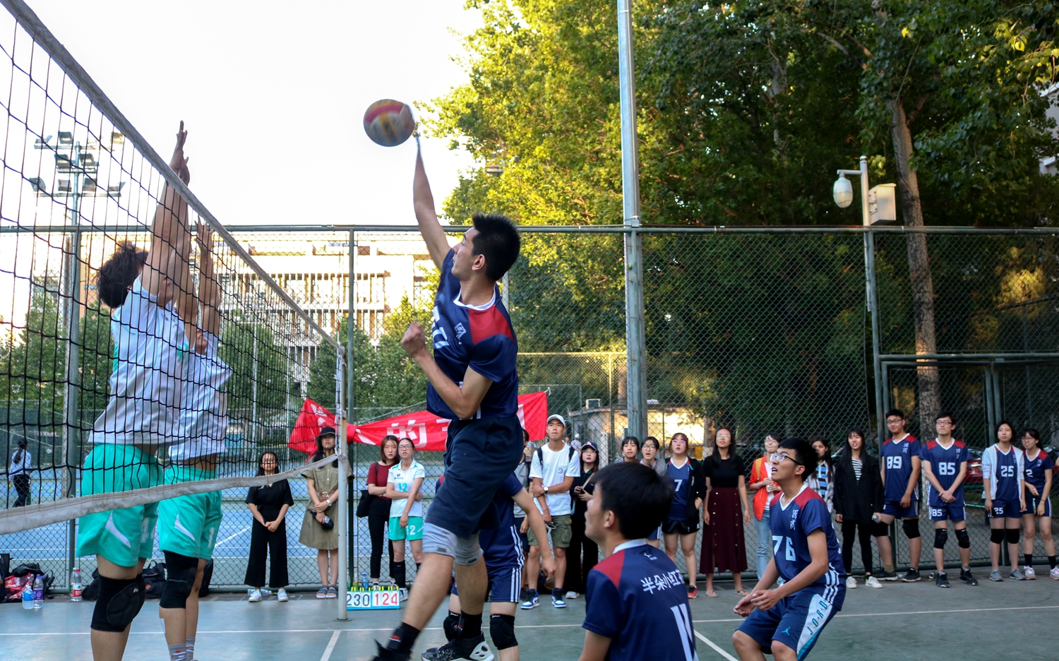 5月20日17:50,北京外国语大学国际商学院男子排球队与日语学院男子排球队于排球场进行了“北外杯”排球赛男排小组赛的对决。国商球员一鼓作气,技压对手,以2:0的比分战胜日语学院。