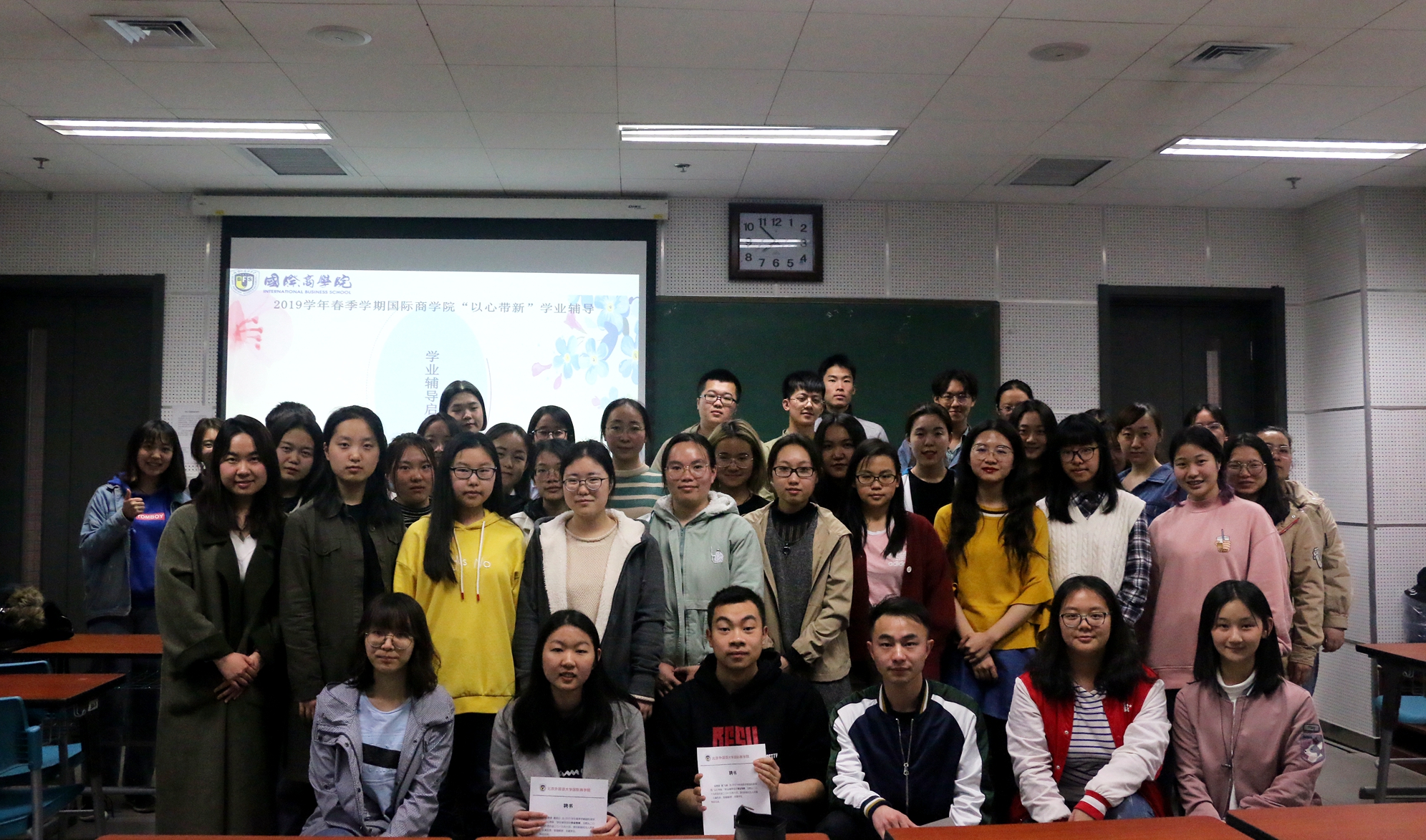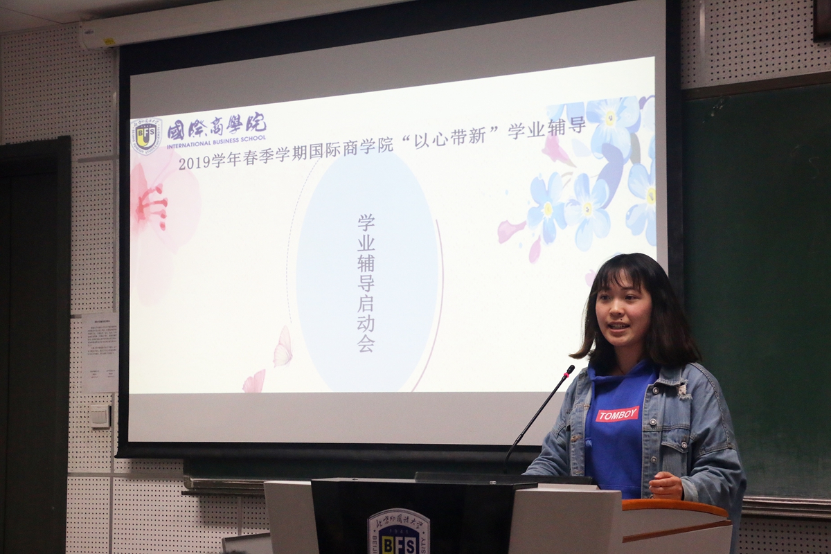 4月12日19:30,国际商学院2018-2019学年春季学期“以心带新”学业辅导启动会在北外国际大厦327教室召开。国际商学院本科生团总支书记邓会荟,三名学生导师代表及近五十名国商2017、2018级本科生参加本次启动会。