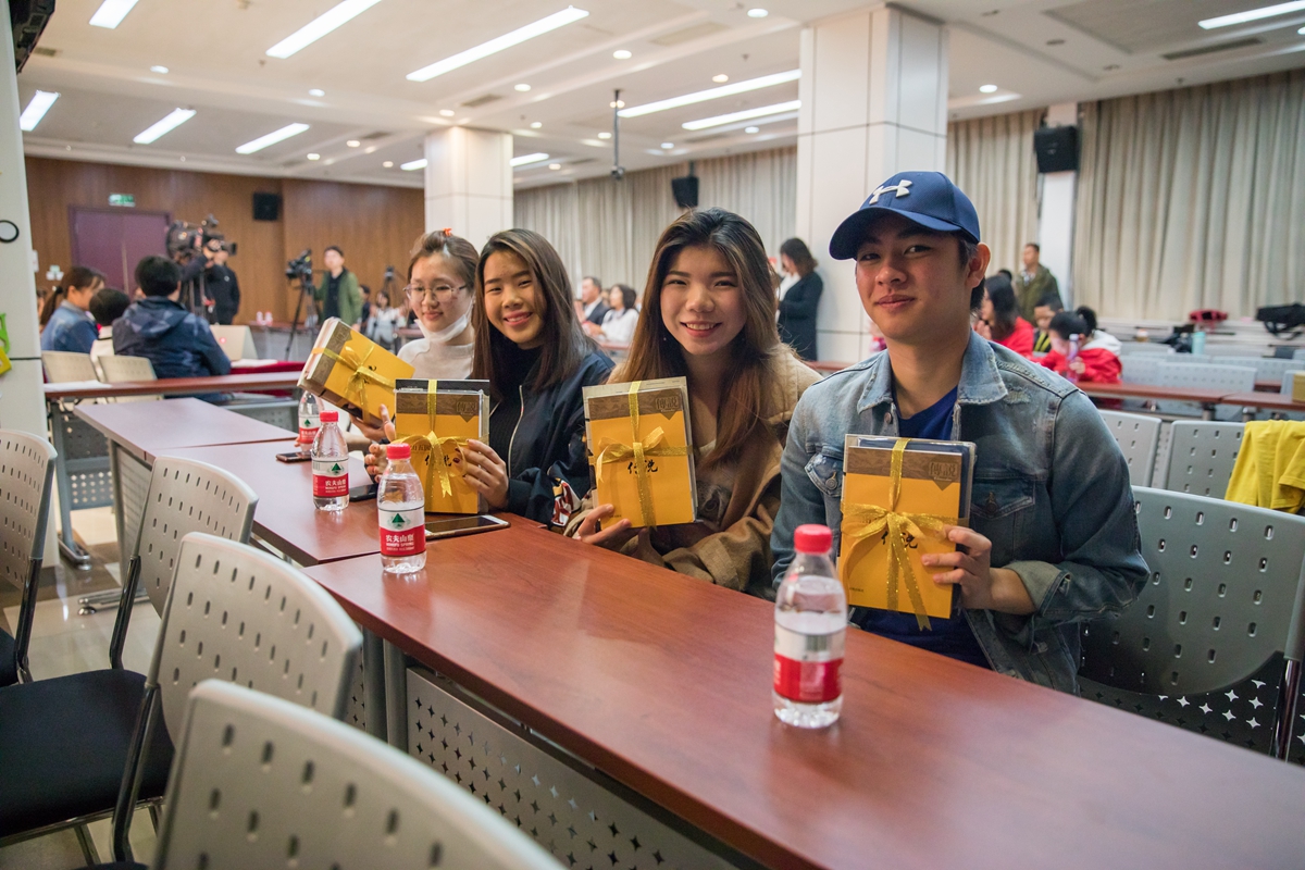 国际商学院留学生CHIN MIN XUEN作为外国留学生代表上台参与了本次系列活动的启动仪式环节。