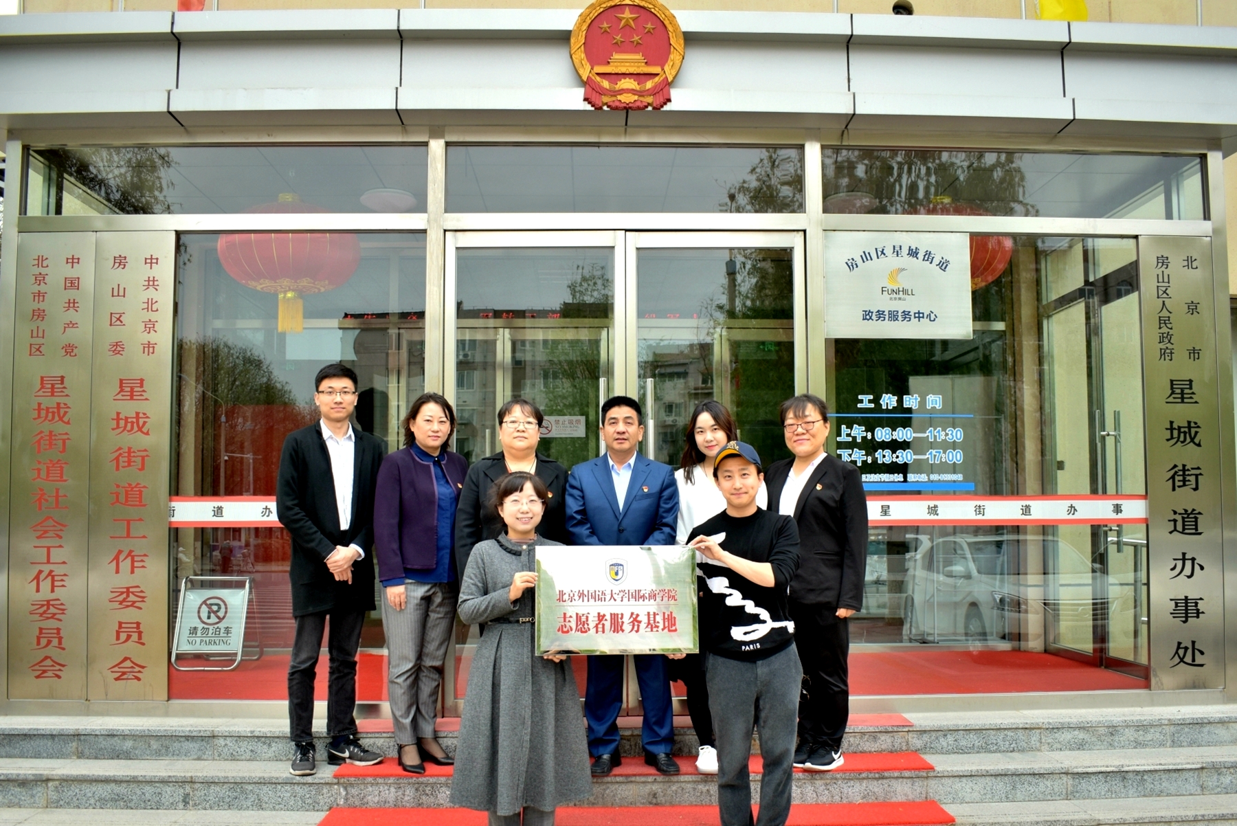 为贯彻践行十九大精神,拓宽社会实践志愿服务项目,4月19日14:00,北京外国语大学国际商学院与星城街道工委于星城街道办事处进行共建交流会,并举行“志愿者服务基地”授牌仪式。星城街道工委书记黄晓龙,副书记蔡文丽及相关科室负责人,国际商学院研究生团总支书记李文斌,本科生团总支书记邓会荟及国商志愿者代表出席会议。
