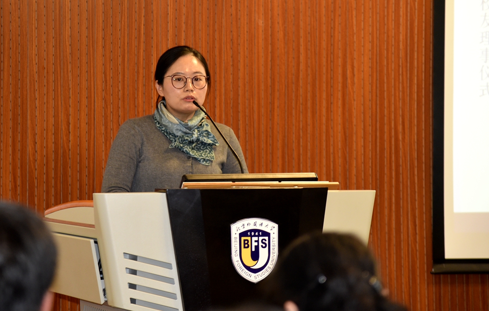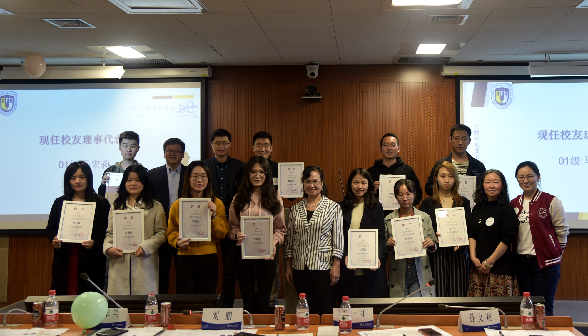 在校友理事聘任环节,现任理事代表2001级校友马宏莉对校友理事的工作做了总结与分享。高翠兰为新任校友理事颁发聘书,合影留念。2015级校友李玉磊作为新任校友理事代表对国商近些年的发展与在校学习体验进行了分享。校友会现任副秘书长李丹阳同学对校友会近一年来的工作以及未来工作计划进行了述职。