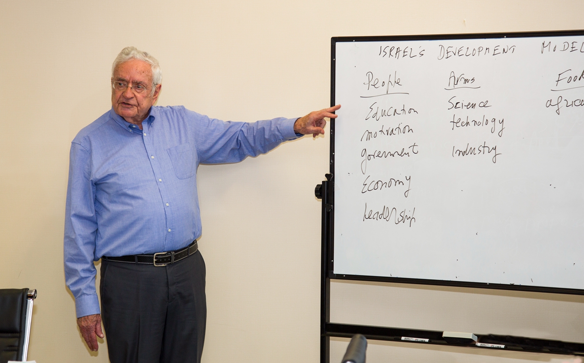 3月20日,国际商学院教师发展中心在916会议室举办本学期第一次教师活动,本次活动的嘉宾为希伯来大学的Meron Medzini教授。Meron Medzini教授为哈佛大学博士,曾担任以色列政府和三位总理的新闻发言人。