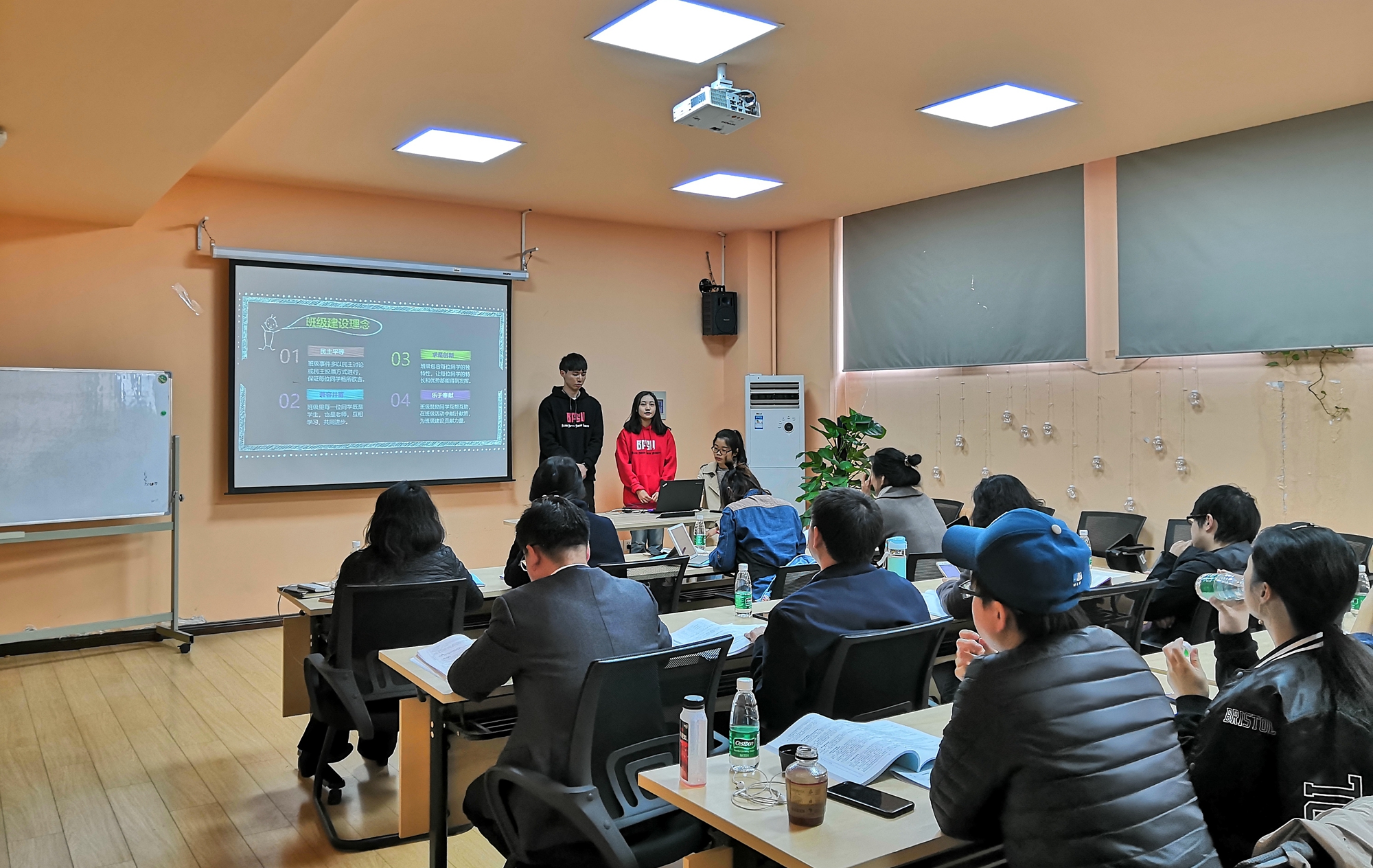 答辩过程中,三个班级班委分别从各班班级建设理念和规章制度、班主任及班干作用、班级文化、班级建设和实践活动及成果等方面进行风采展示,充分呈现团结友爱的班级精神风貌。