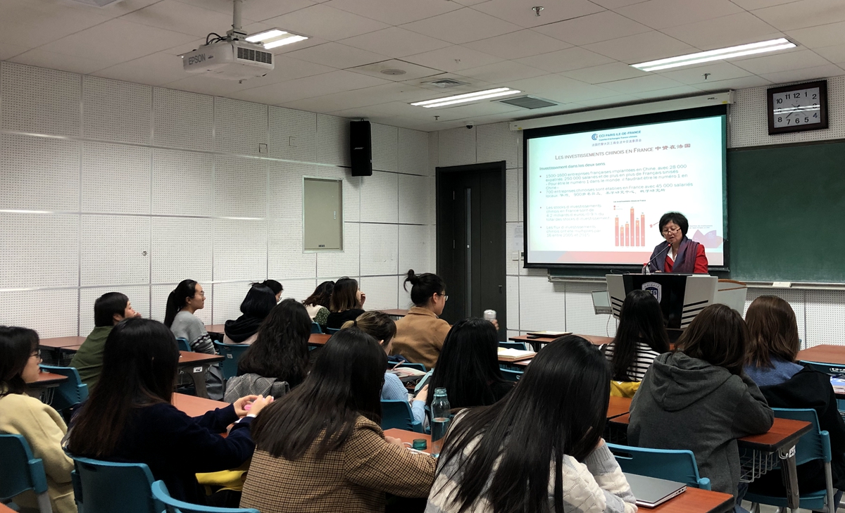 在会谈与讲座期间,苏晓青向在场的同学们详细介绍了法国当今的经济贸易状况、法国巴黎大区工商会的现状、同学们最关心的实习机会,马燕生、苏晓青毫无保留地向学生们现场答疑,解答大家对法国、中法关系、以及深造和事业发展方向的疑问。