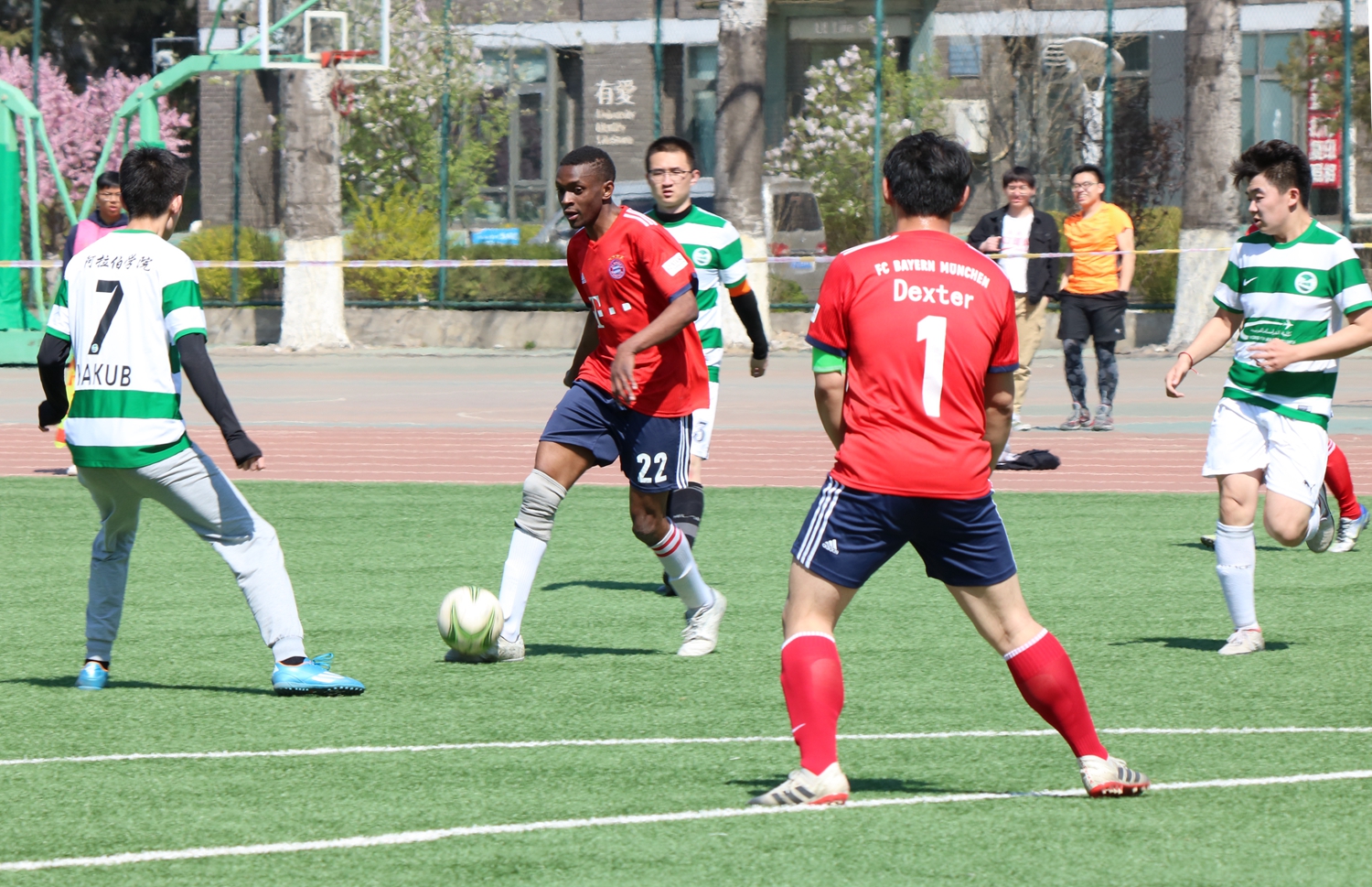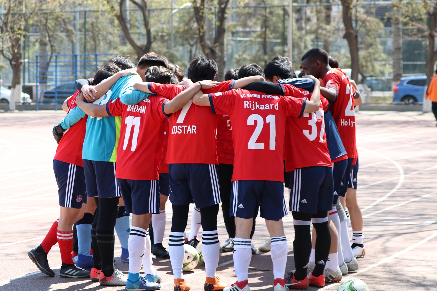 4月1日12:20,北京外国语大学国际商学院男子足球队与阿拉伯学院男子足球队于足球场进行“北外杯”足球赛小组赛的对决。国商球员势如破竹,以5:0的比分一举夺得比赛胜利。