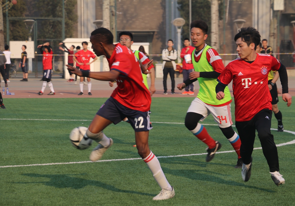 4月3日16:40,北京外国语大学国际商学院男子足球队与俄语学院男子足球队于足球场展开“北外杯”足球赛小组赛的交锋。国商球员再次展现出高超球技,延续首战胜局,以4:1的比分拿下小组赛第二场的胜利。