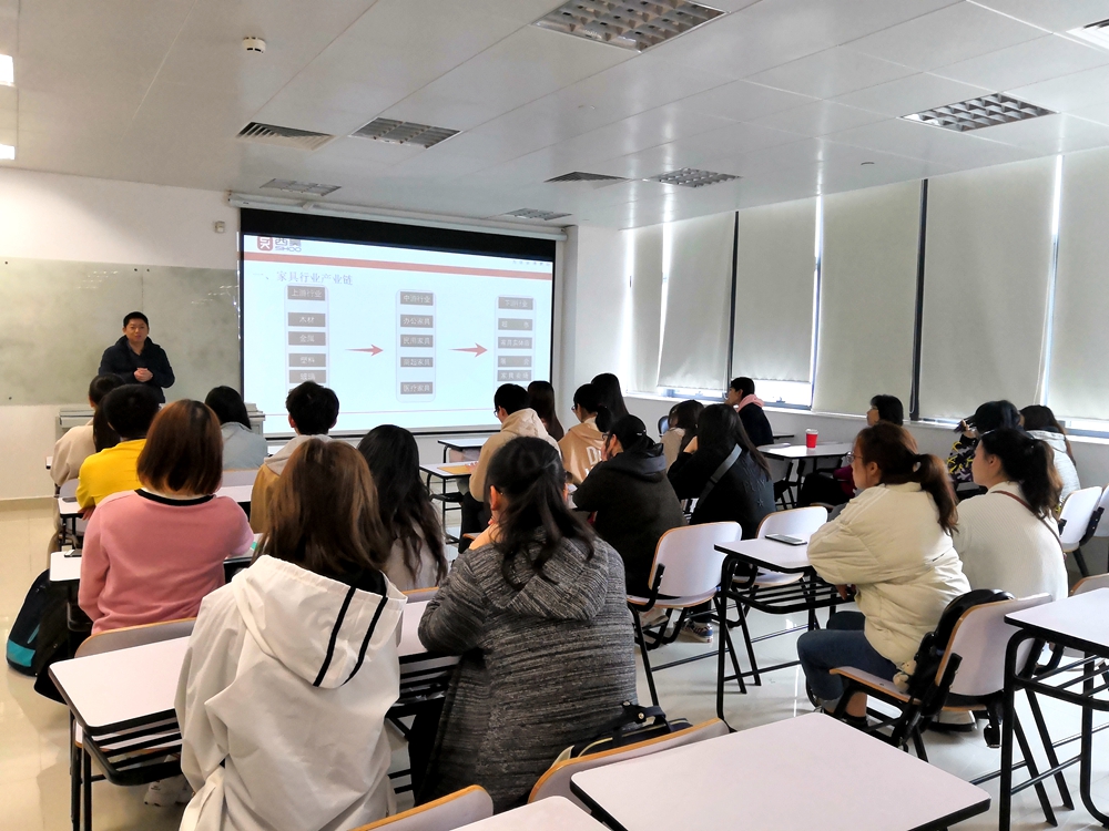 本次参访分为两个部分。第一部分为家具行业主题讲座。西昊家具总经理罗慧平从企业家的角度系统为同学们阐述了家具行业的过去、现状和未来发展趋势。从佛山市家具产业发展历程,到中国家具生产产业链,再到企业发展现状和今后发展趋势,罗慧平都对同学们关心的问题做出翔实的解答,同学们也对产业结构分析和全球贸易现状有了进一步的认识和感悟。