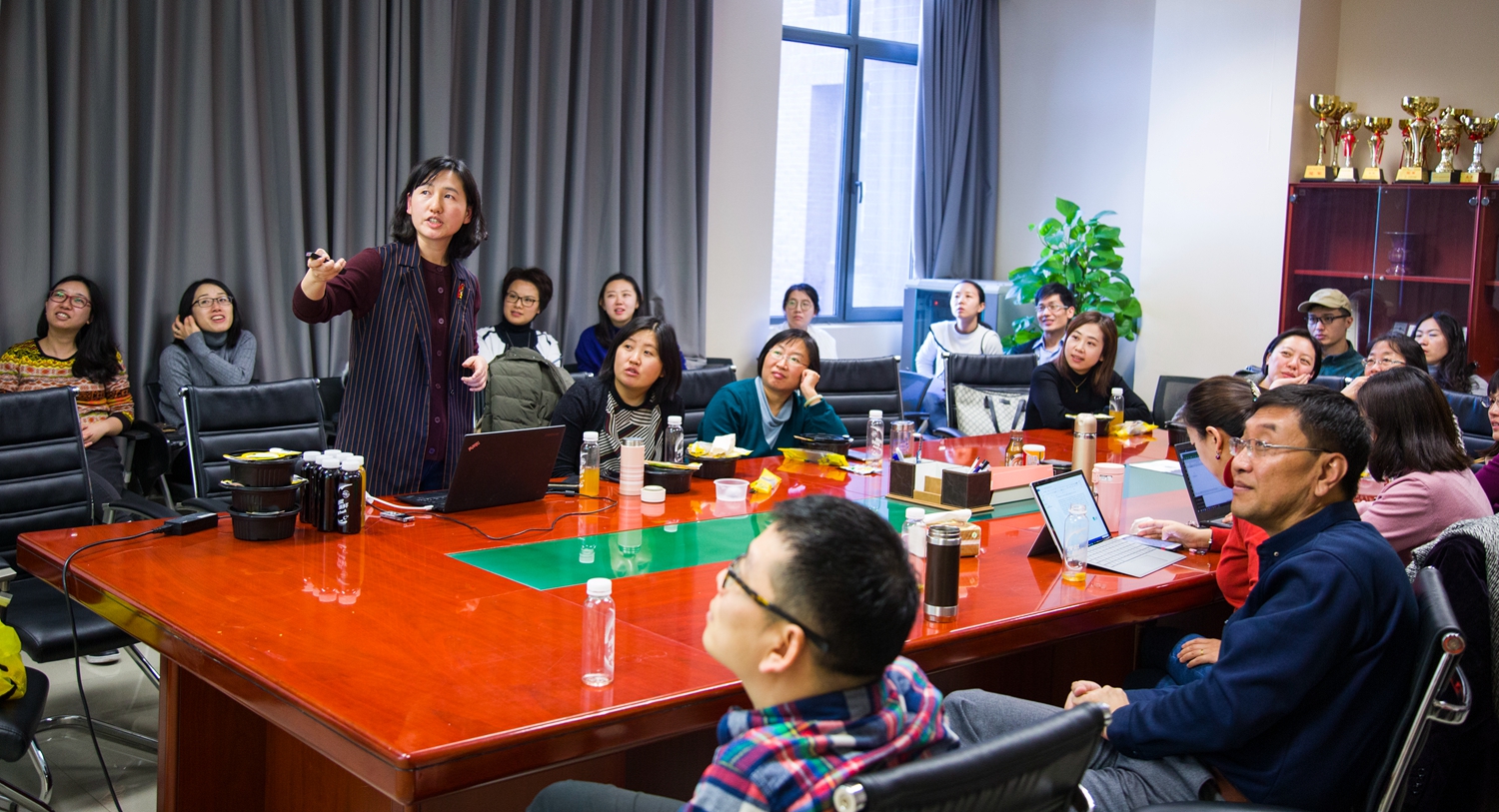 王敏从给学生安全感、激活课堂、消解职业倦怠感这三个方面结合自身教学经验,生动有趣地分析了多年教学中的各种深刻体会。分享期间,与会老师纷纷提出各种相关疑问、发表自己的意见和建议,探讨在各自课堂上遇到的诸多现象与问题,王敏根据老师们的不同情况提出自己独特的见解。与会老师表示时间太短,意犹未尽,希望可以多进行相关分享活动。