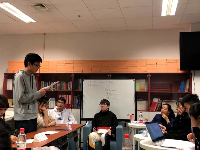 2018年9月底至12月,国际商学院组织2018级国际经济与贸易一班(中外合作办学实验班)在院长牛华勇、金融系主任任康钰、外籍教师Carol CUI的带领下,进行了为期九周的读书会活动。分别由牛华勇、任康钰带领同学们研读《全球通史》的上下册,由Carol带领同学们研读《大空头》全英文版。