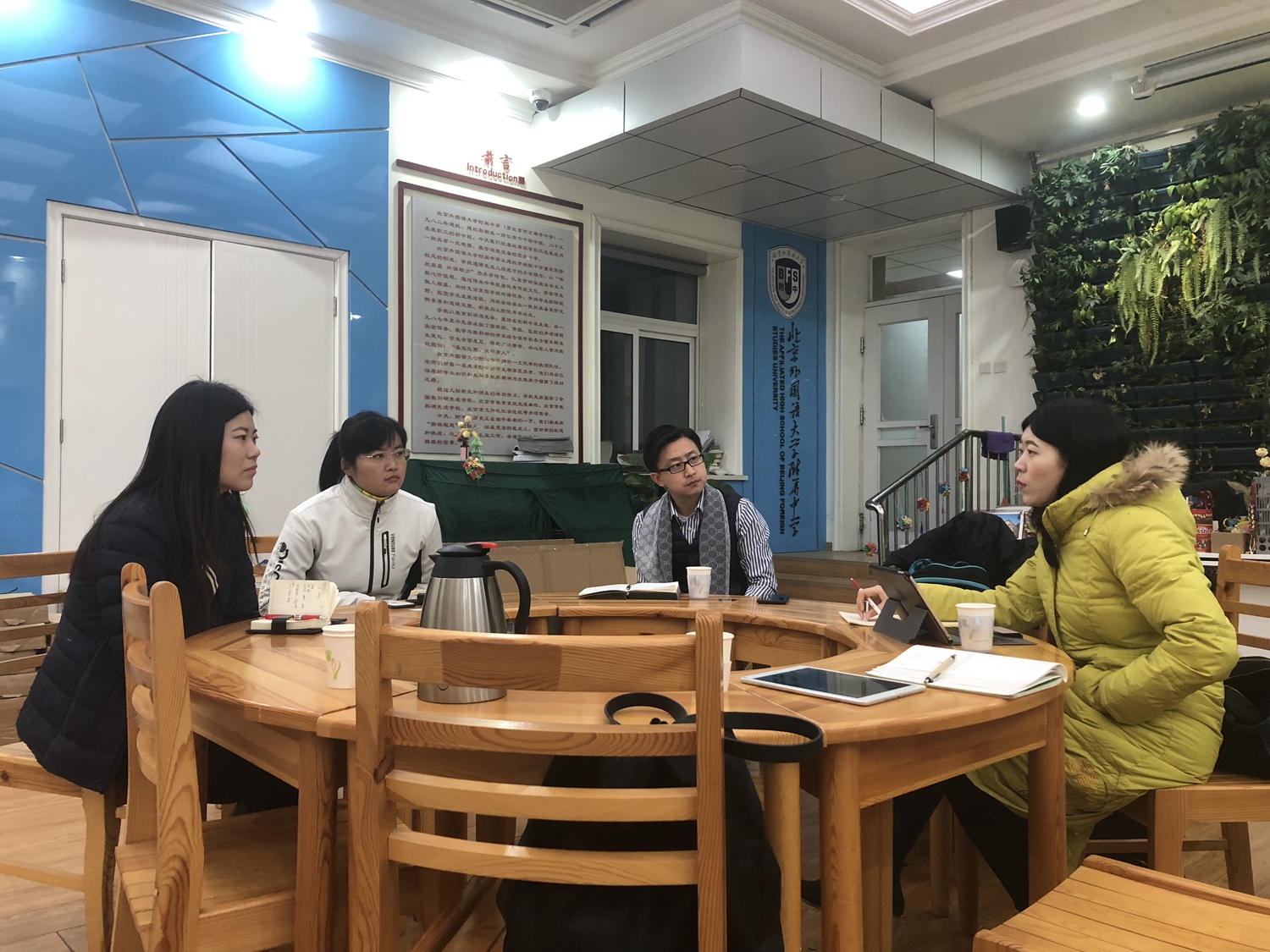 2018年12月27日上午,北京外国语大学国际商学院研究生团总支书记李文斌一行前往北京外国语大学附属中学,与北外附属中学团委书记和教务主任就共同搭建志愿平台的情况进行了座谈。