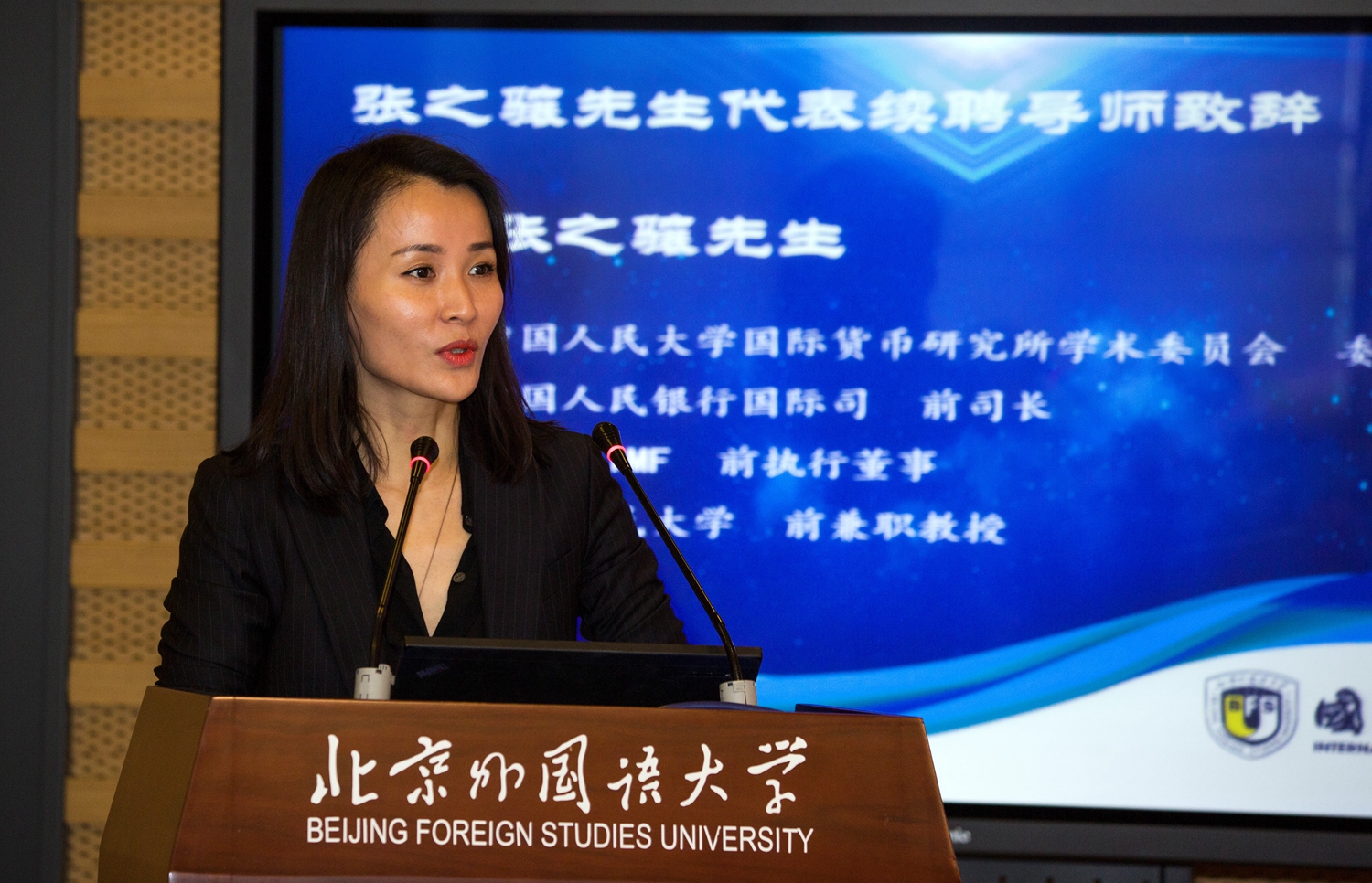 在开幕式上。中国人民银行国际司前司长、中国驻IMF前执行董事、中国人民大学前兼职教授张之骧代表续聘导师致辞。张之骧教授表示很荣幸作为续聘导师代表发言。张之骧以其在企业运营、货币基金运营等领域深厚的了解,曾经指导过多位国际商学院硕士研究生。
