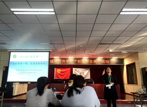 11月18日14:00,“职场断舍离”主题志愿服务活动在房山区星城街道办举行。此次活动由高级教师、国家二级心理咨询师贺芯蕊老师主讲,共青团星城街道委员会主办,北外国商志愿服务队协办。